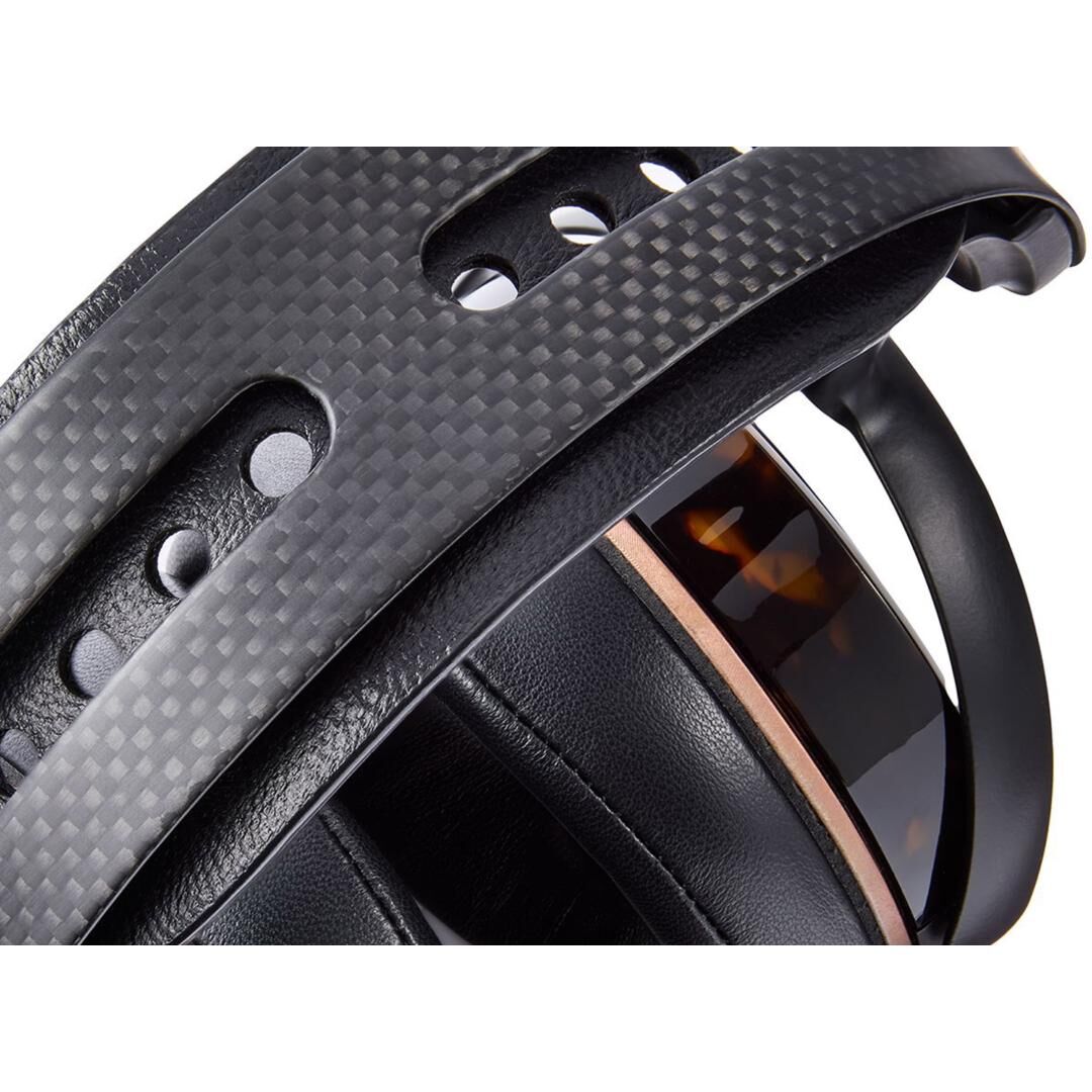 Die Materialwahl unterstreicht den Premium‑Anspruch: Carbonfaser, leichtes Magnesium, echtes Leder, poliertes Polymeracetat und dezente Kupferakzente sorgen für Stabilität, Haptik und Langlebigkeit. Ein ultrahochreines Kabel aus gerichteten OCC‑Kupferlitzen mit niedriger Kapazität und minimalem Widerstand gewährleistet einen sauberen Signalweg – passend für Audiophile und Professionals, die auf unverfälschte Wiedergabe Wert legen.