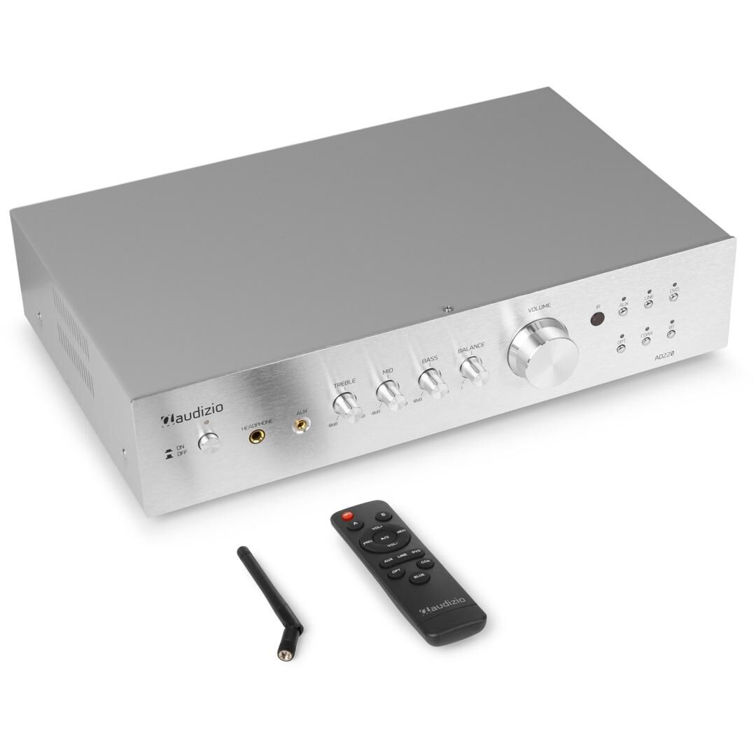 Der Audizio AD220A ist ein 2‑Kanal HiFi‑Verstärker, der sich durch ein ausgewogenes Klangbild und eine hohe Leistungsfähigkeit auszeichnet. Mit einer maximalen Ausgangsleistung von 2 × 200 W pro Kanal liefert er auch bei höheren Lautstärken einen klaren, dynamischen Sound ohne Verzerrung. Das kompakte Design in silberfarbenem, gebürstetem Edelstahl macht ihn zu einem eleganten Bestandteil jeder Heim‑Audio‑Einrichtung.