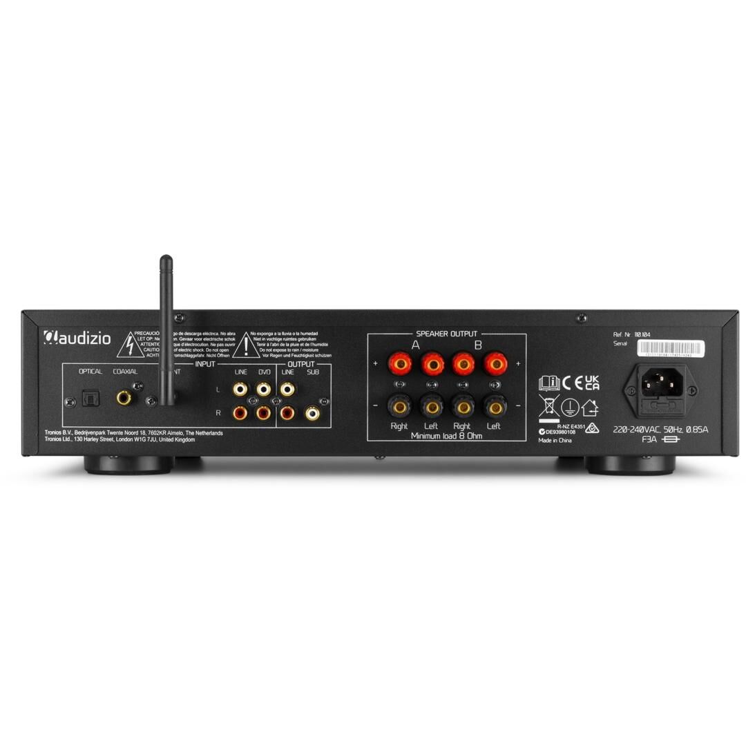 - Vielseitige Anschlüsse: 3 × RCA, 3,5 mm AUX, optisch, koaxial