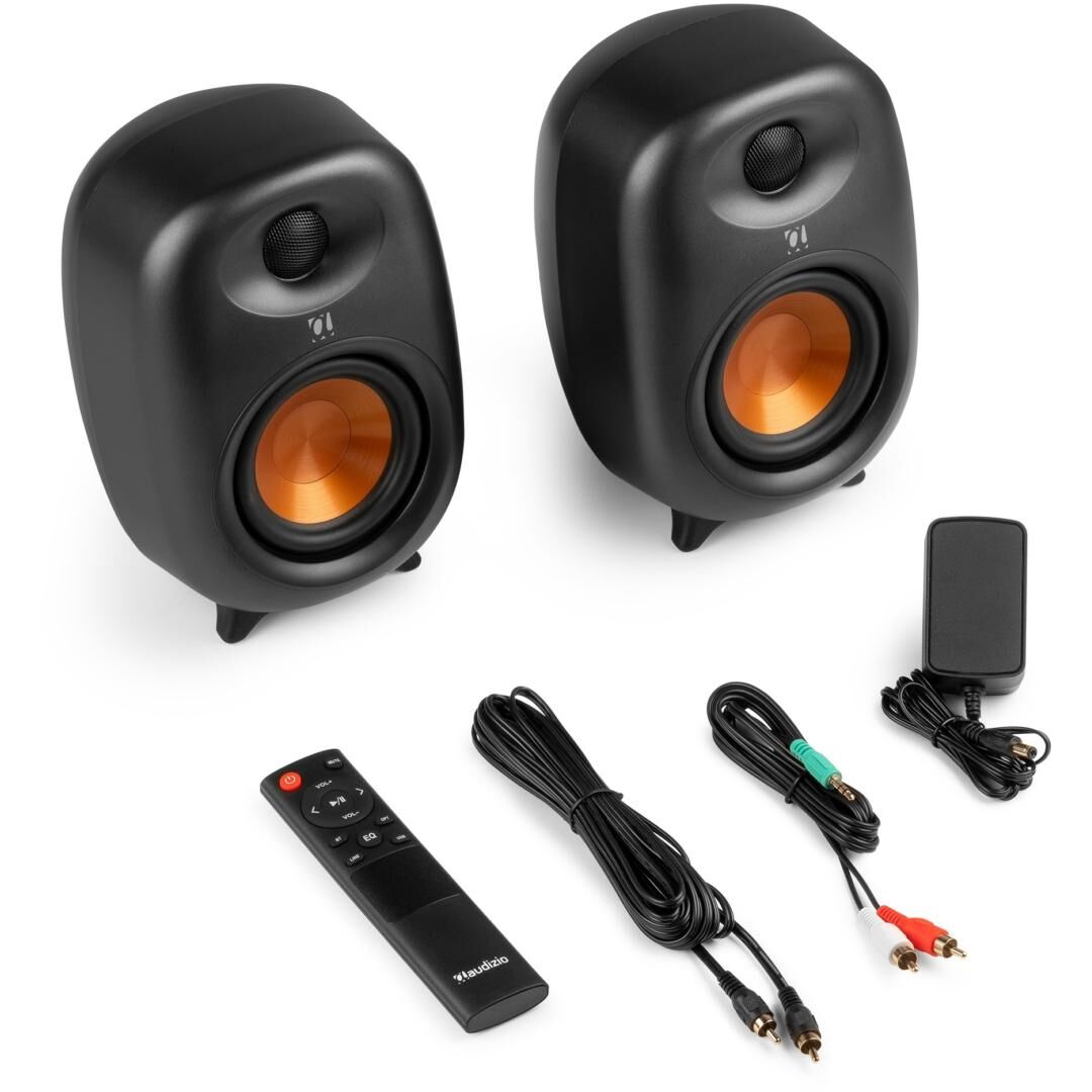 Das Audizio RS80 Active Bookshelf Speaker Set ist ein kompaktes, leistungsfähiges 2‑Wege-Lautsprechersystem für Wohnzimmer, Homeoffice und Gaming-Setup. Teil der RS‑Serie von Audizio, kombiniert es einen integrierten digitalen Verstärker mit moderner Konnektivität und einem aufgeräumten Design in Dunkelgrau. Mit 160 W Max. und 80 W RMS liefert das Set eine klare, detailreiche Wiedergabe – von satten Bässen bis zu transparenten Höhen – und passt dank der geringen Stellfläche problemlos auf Schreibtisch, Sideboard oder Regal.