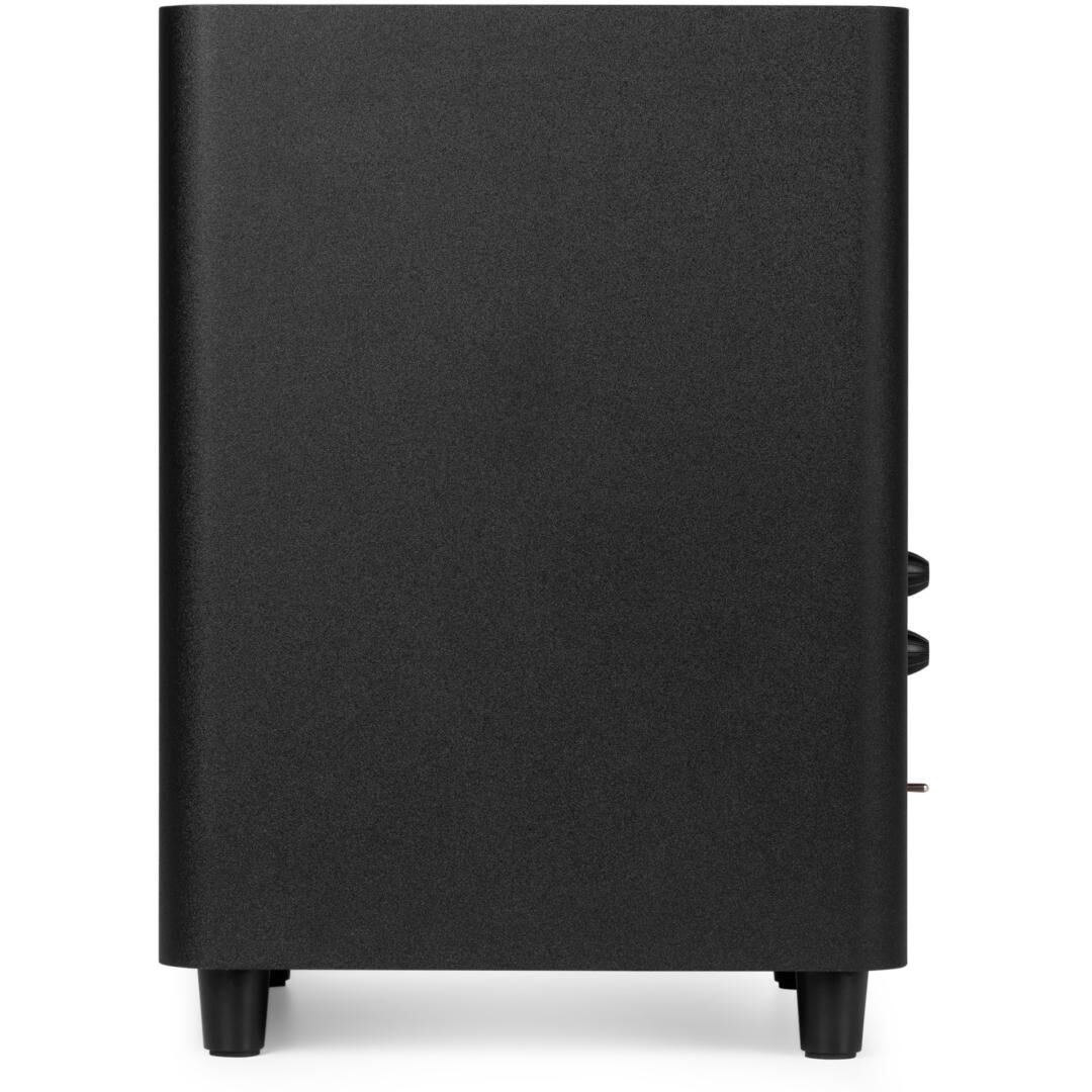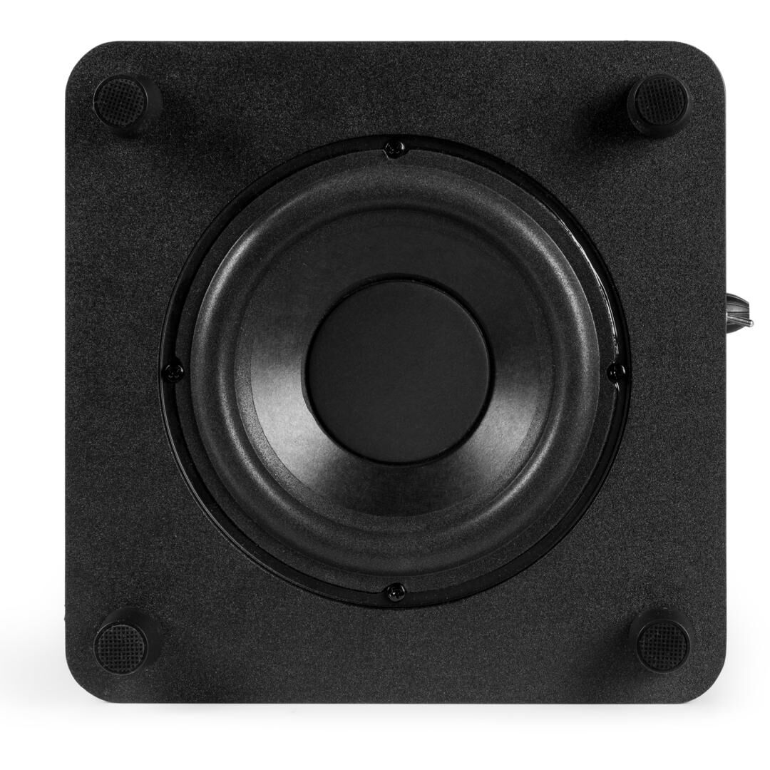 Akustisch setzt Audizio auf ein Downfire-Design in Kombination mit Bassreflex-Technik: Der nach unten abstrahlende Woofer nutzt den Boden für eine gleichmäßige Verteilung der tiefen Frequenzen, während das reflexunterstützte Gehäuse für mehr Pegelreserven sorgt. Silikonfüße entkoppeln effektiv und minimieren unerwünschte Vibrationen – ein Plus für klaren, straffen Bass auch in kleineren Räumen.