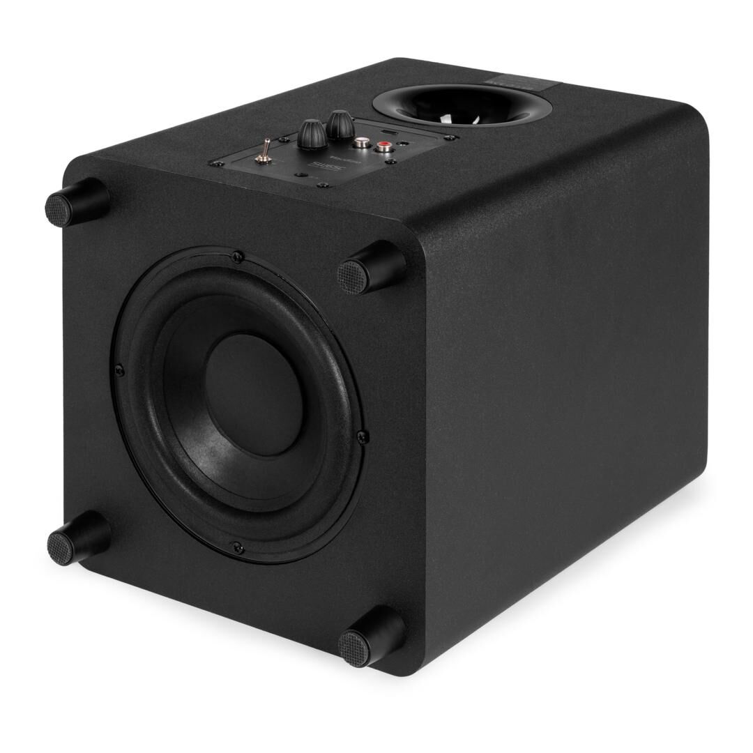 - Bauart: Aktiver Subwoofer (Downfiring, Bassreflex)
