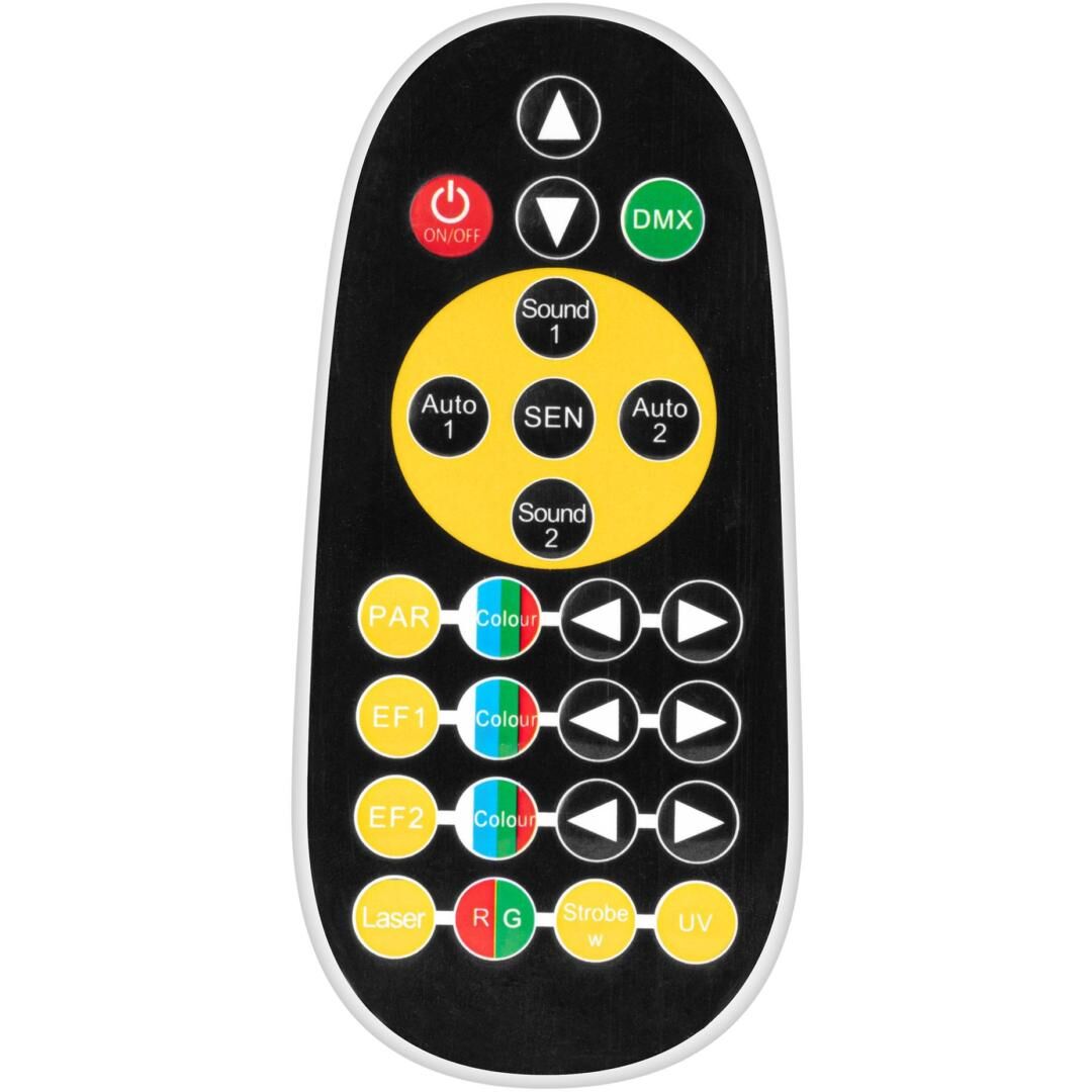 - UV/Strobe‑Kombi mit 4 Weiß/UV‑LEDs für knallige Akzente und schnelle Blitze