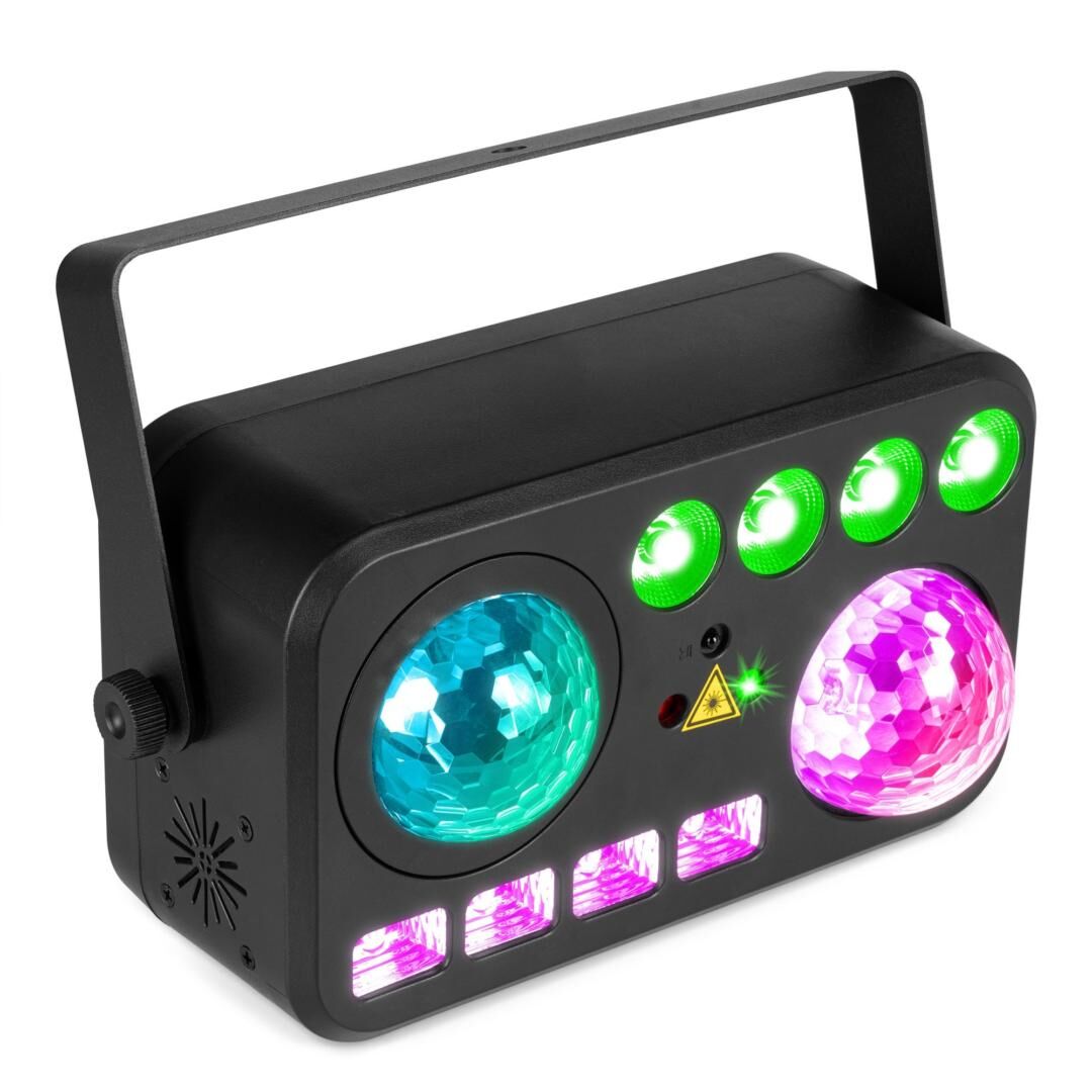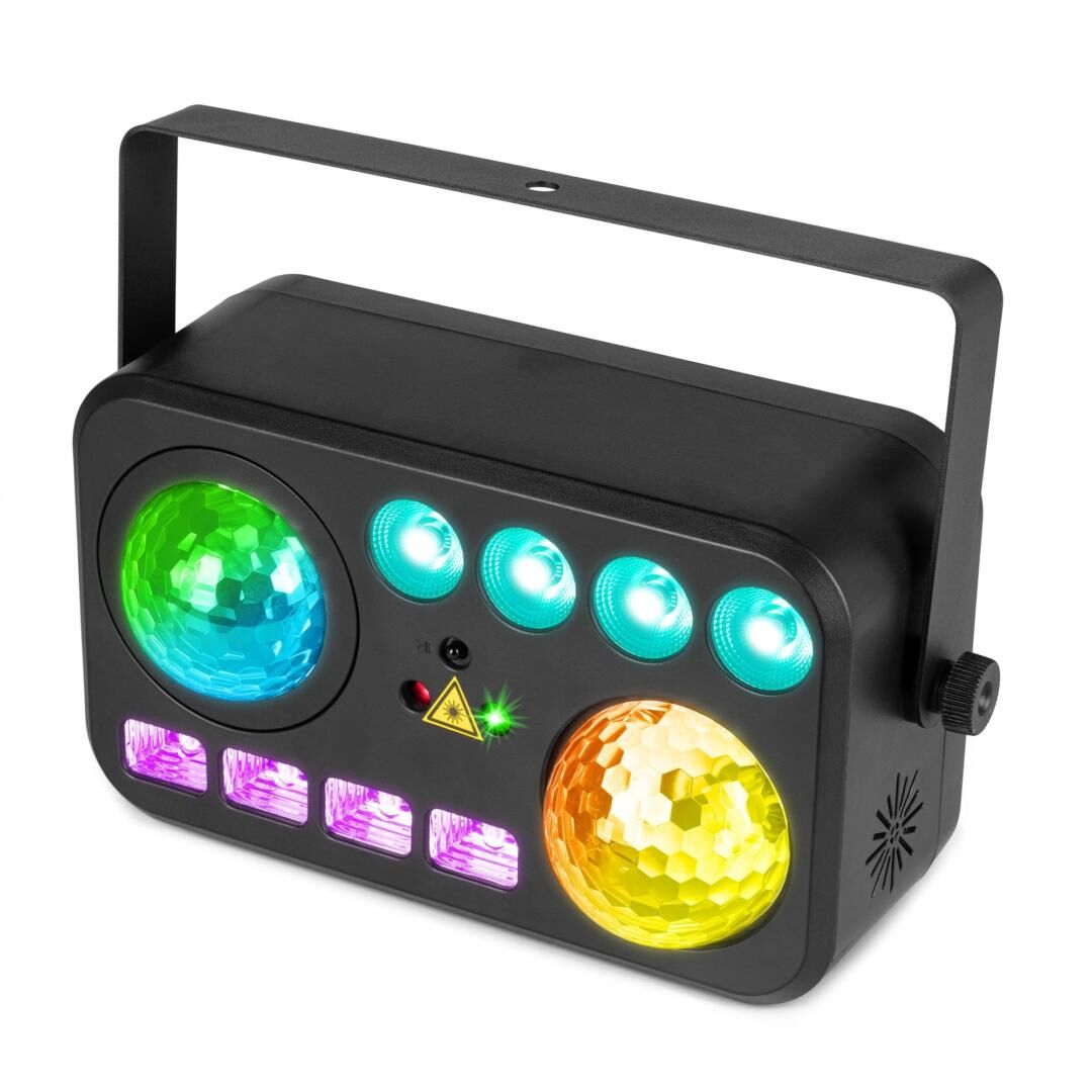 Highlights- 6-in-1 DJ-Lichteffekt: Water Wave, Jelly Ball, PAR, UV, Strobe und Doppel-Pattern (Rot/Grün)