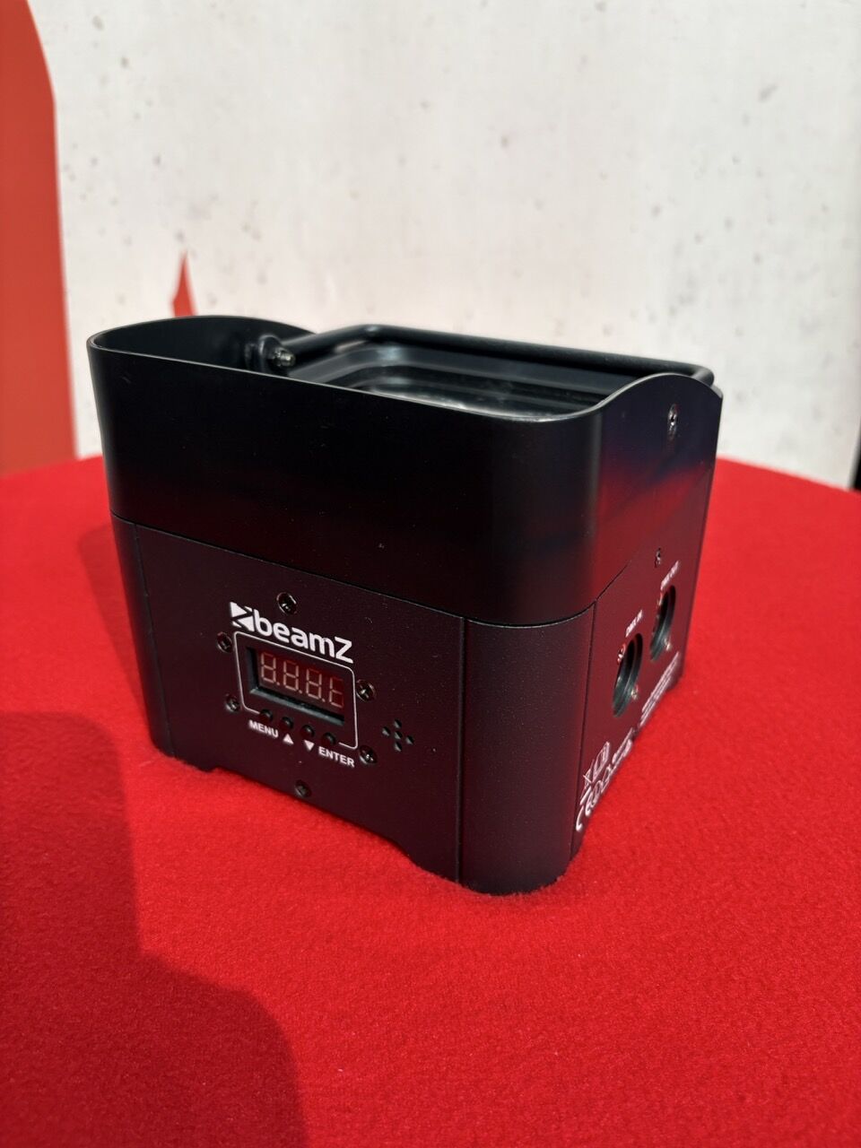 - Anschlüsse: DMX Ein-/Ausgang (3-poliger XLR), IEC-Stecker Ein-/Ausgang