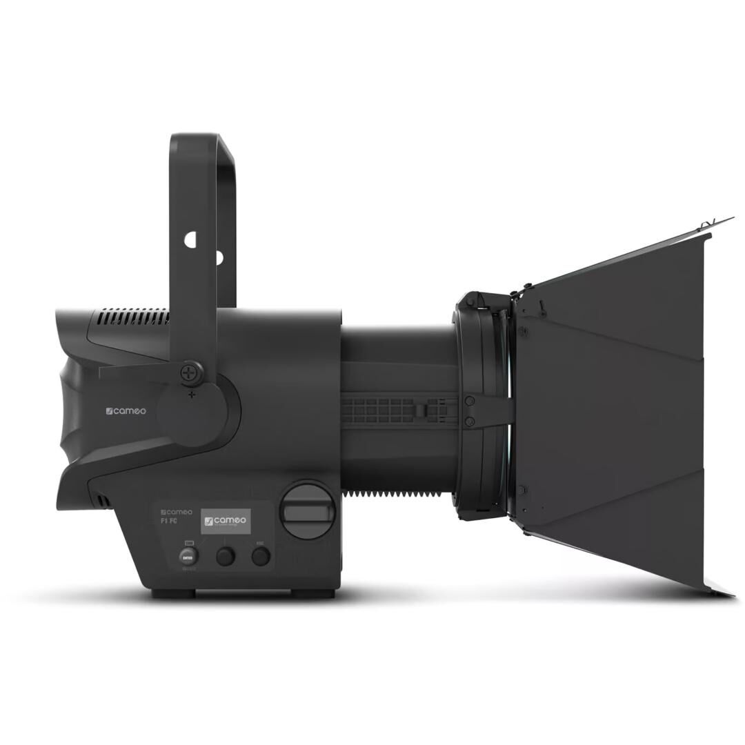 Für maximale Mobilität kann der Scheinwerfer mit einer optionalen V-Mount Akkuplatte betrieben werden – ideal für Drehs on location, Messeflächen oder temporäre Installationen ohne feste Stromverkabelung. Im Lieferumfang befinden sich bereits Gelrahmen, Netzkabel und eine 8-fach Barndoor, sodass der Cameo F1 FC direkt einsatzbereit ist.