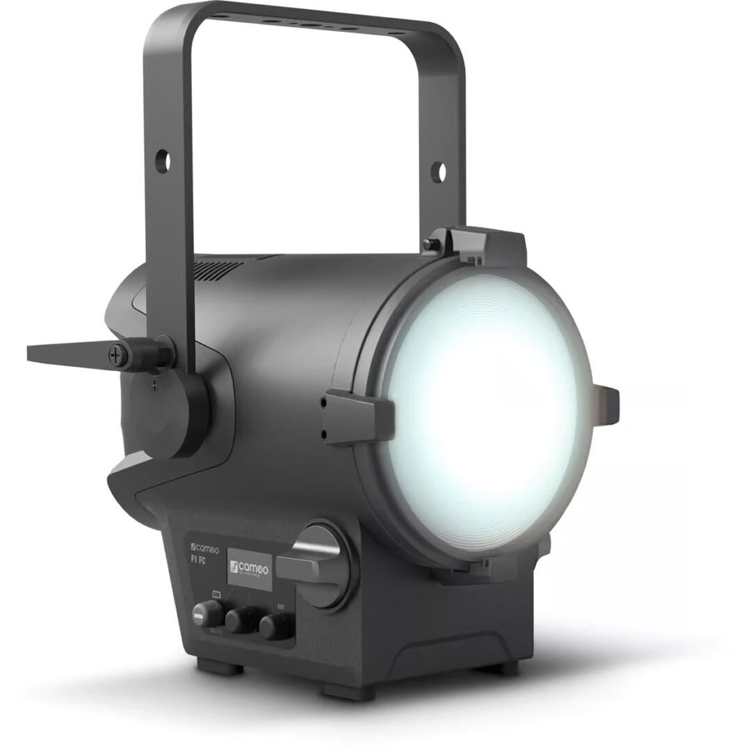 Der Cameo F1 FC ist ein kompaktes Full-Color Fresnel-Spotlight mit RGBW-LED, das speziell für Theater, Live-Bühnen, Broadcast und Film entwickelt wurde. Mit 2.600 Lumen ersetzt er herkömmliche 650-Watt-Halogen-Fresnelscheinwerfer und liefert dabei eine deutlich effizientere, farbstabile und wartungsarme LED-Performance. Das robuste Magnesiumgehäuse hält den Gesamtaufbau leicht und mobil – ideal für Tourneeproduktionen, wechselnde Spielstätten und enge Setups.