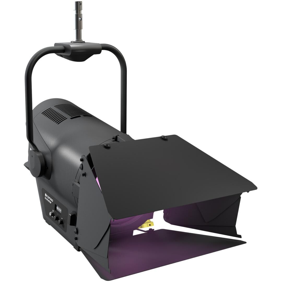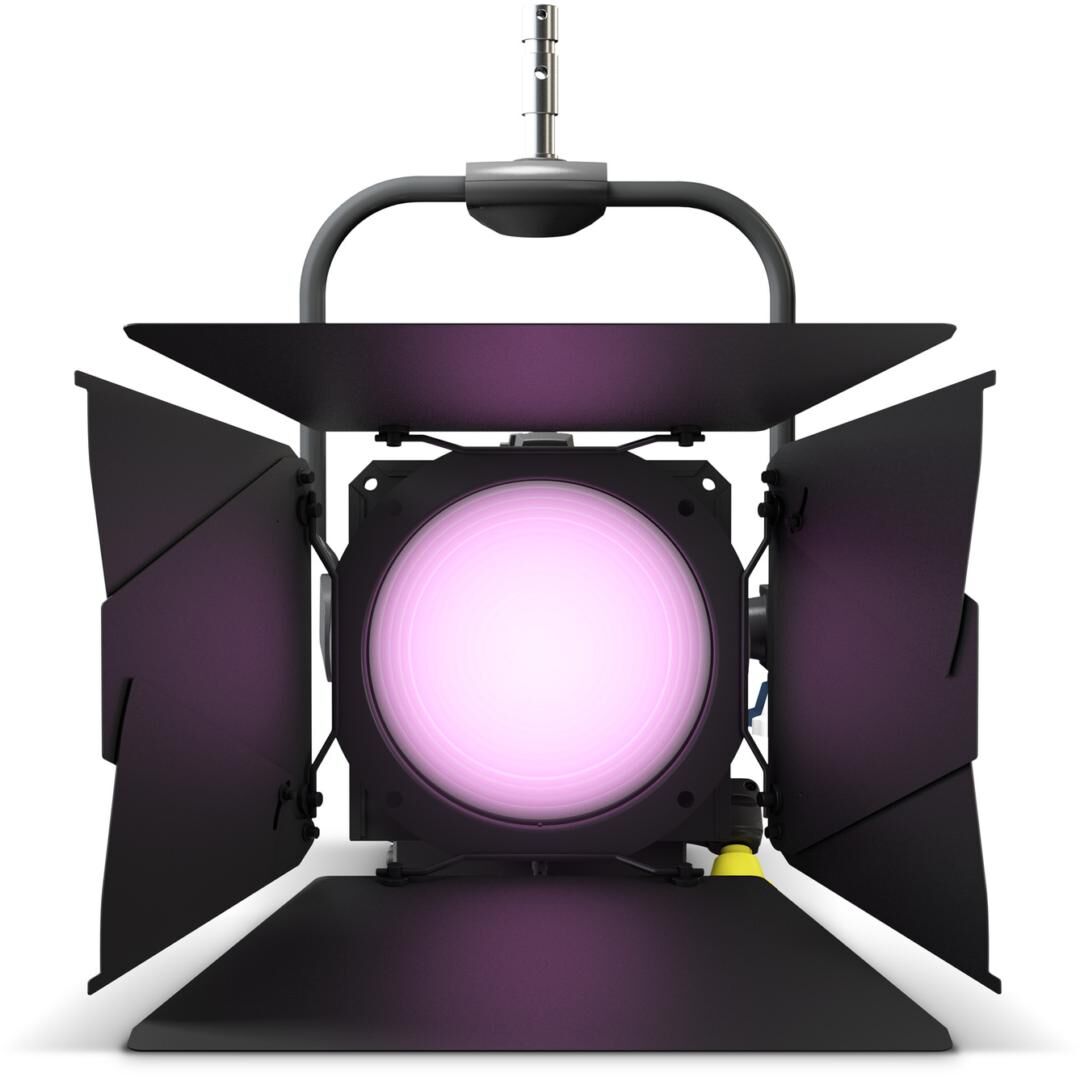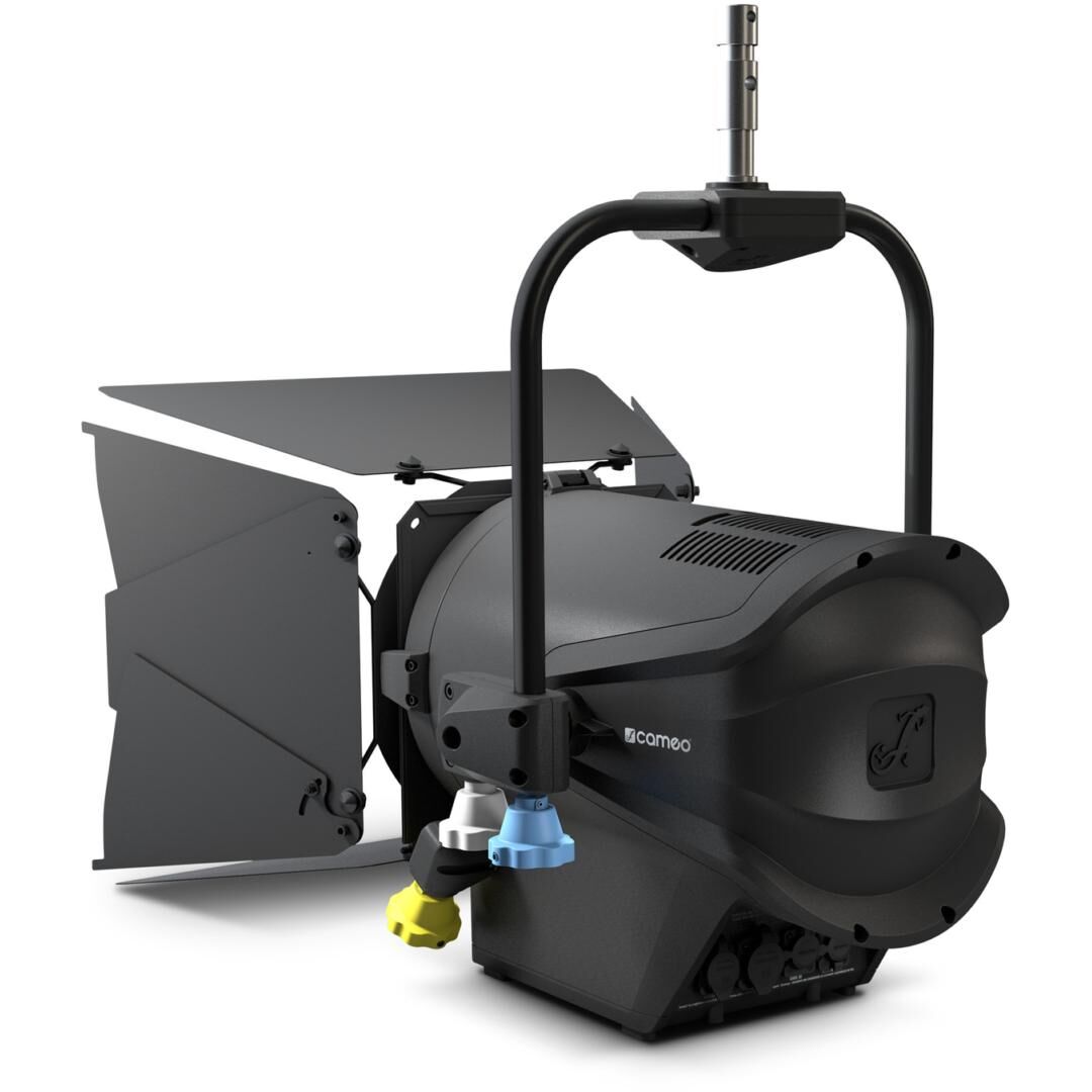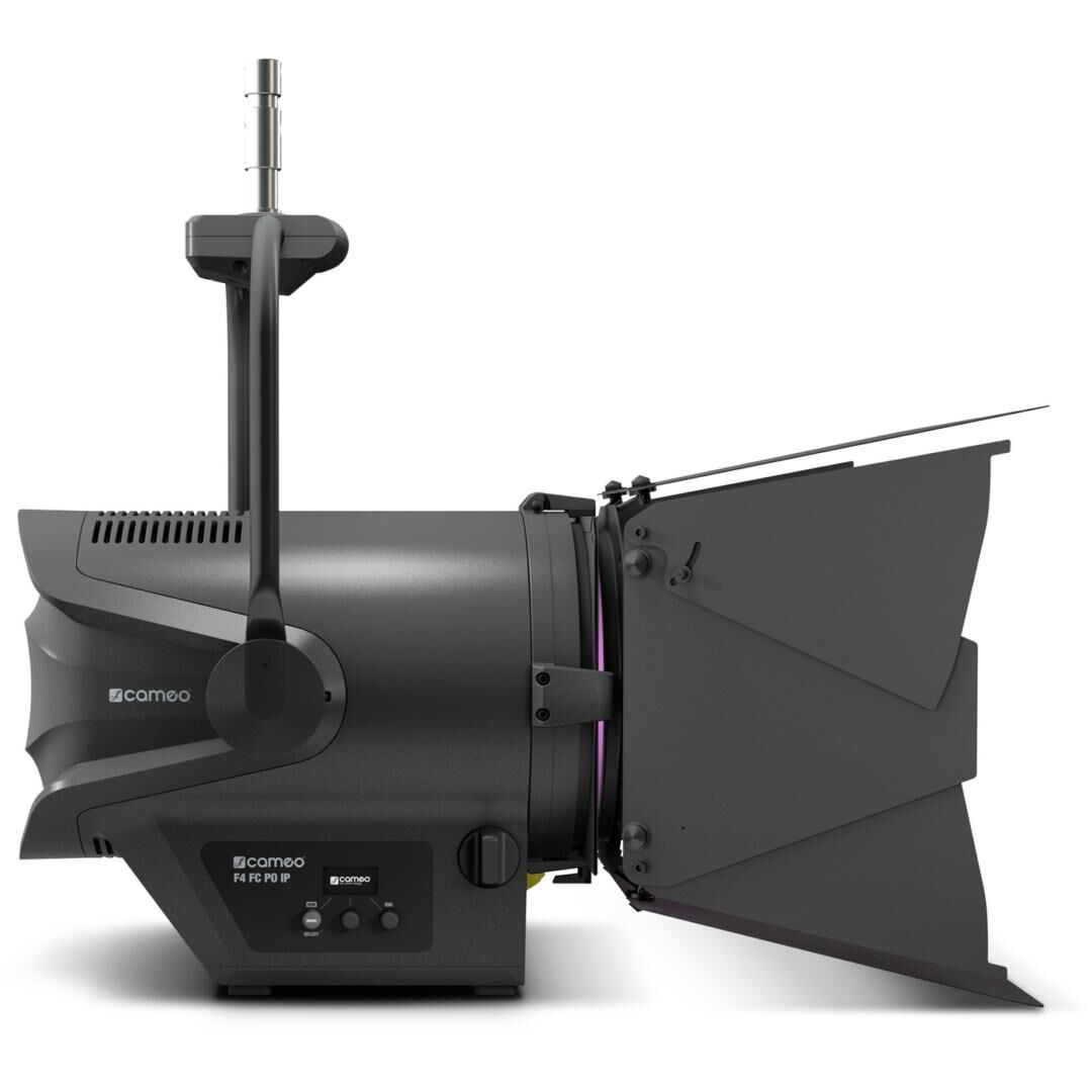Der Cameo F4 FC PO IP ist ein stangenbedienbares Outdoor-Fresnel-Spotlight für professionelle Anwendungen in Film, TV, Theater und Live-Events. Das robuste, IP65-zertifizierte Gehäuse schützt zuverlässig vor Staub und Strahlwasser und macht den Scheinwerfer zur sicheren Wahl für dauerhaften Außeneinsatz. Mit 10.000 Lumen Lichtstrom, einer präzisen 250 mm Fresnel-Glaslinse und einem stufenlosen Zoombereich von 14° bis 52° deckt er sowohl akzentuiertes Spot-Licht als auch homogene Flächenbeleuchtung ab.