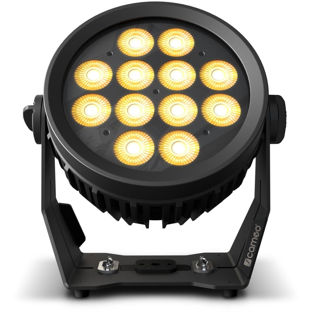 Der Cameo FLAT PRO® 12 G2 ist ein robuster LED-PAR-Scheinwerfer für den professionellen Outdoor-Einsatz. Mit 12 x 10 W 5-in-1 RGBWA-LEDs liefert das Modell FLAT PRO 12 G2 einen homogenen Lichtstrom von 4.300 Lumen und deckt ein breites Anwendungsspektrum ab – von Architektur-Uplighting über Bühnen- und Eventbeleuchtung bis hin zu Theater, Broadcast und Film. Das flache Metallgehäuse ist IP65-zertifiziert und damit zuverlässig gegen Staub und Strahlwasser geschützt.