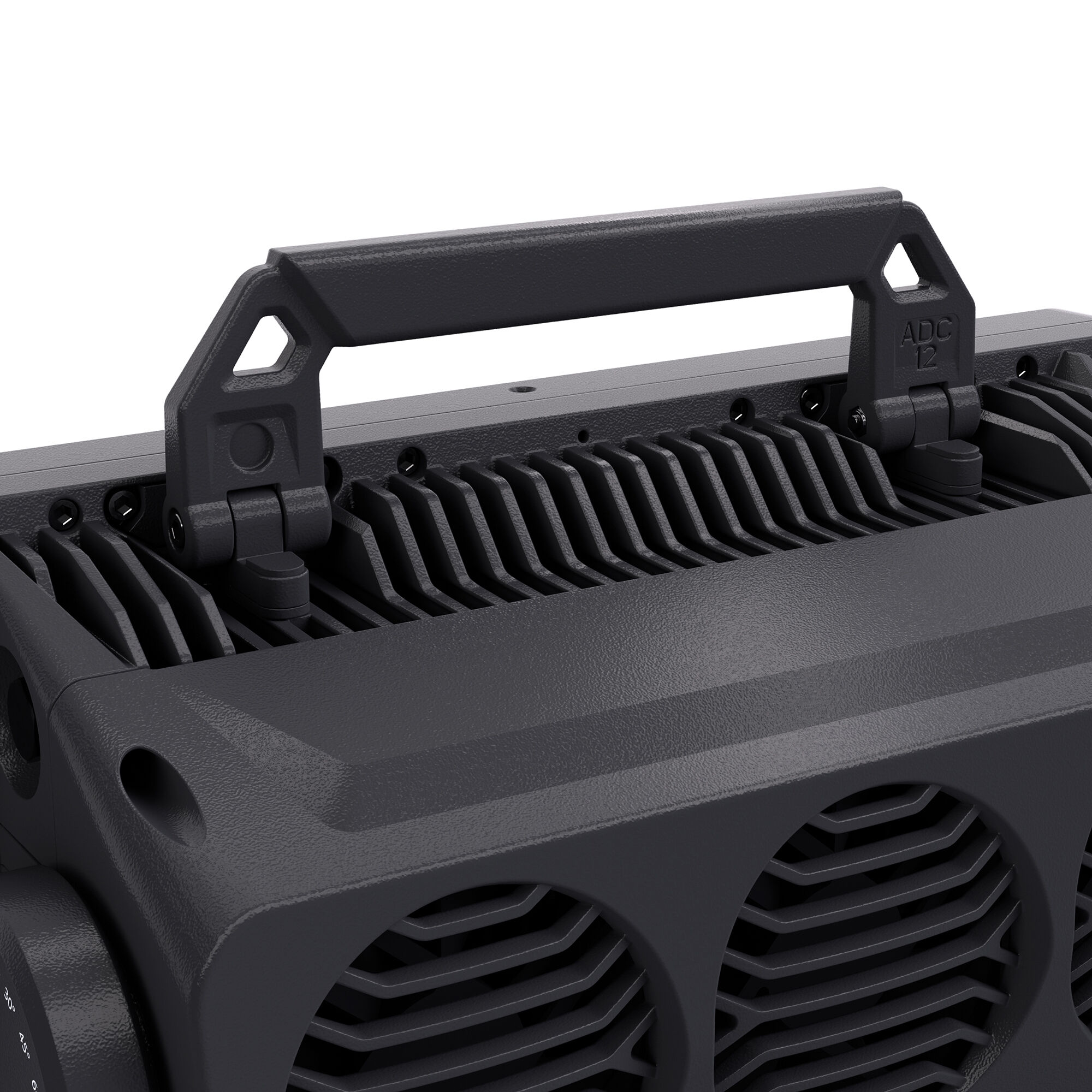 - Robustes, leichtes (12,9 kg) **IP65-Magnesiumgehäuse** für höchste Zuverlässigkeit im Outdoor-Einsatz.