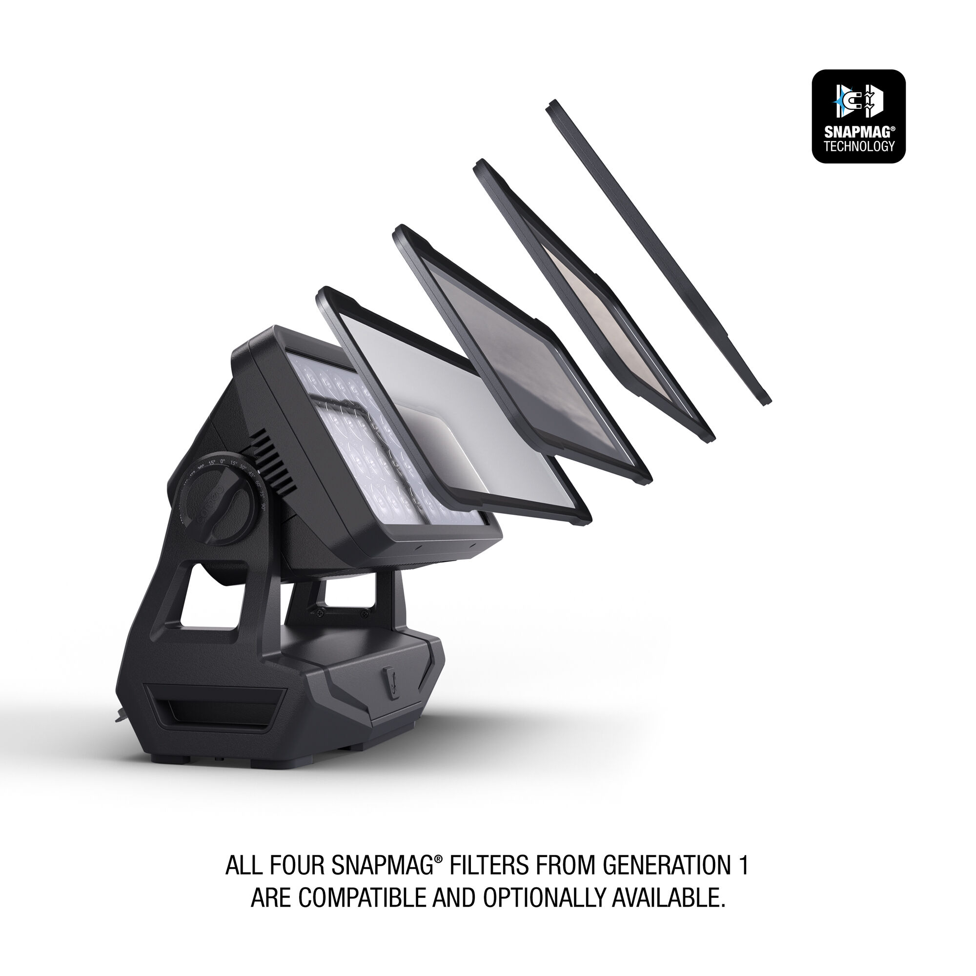 - Optionaler SnapMag® FX Filter für DMX-gesteuerte, schnelle Beam-Angle-Anpassungen (18° bis 54°).
