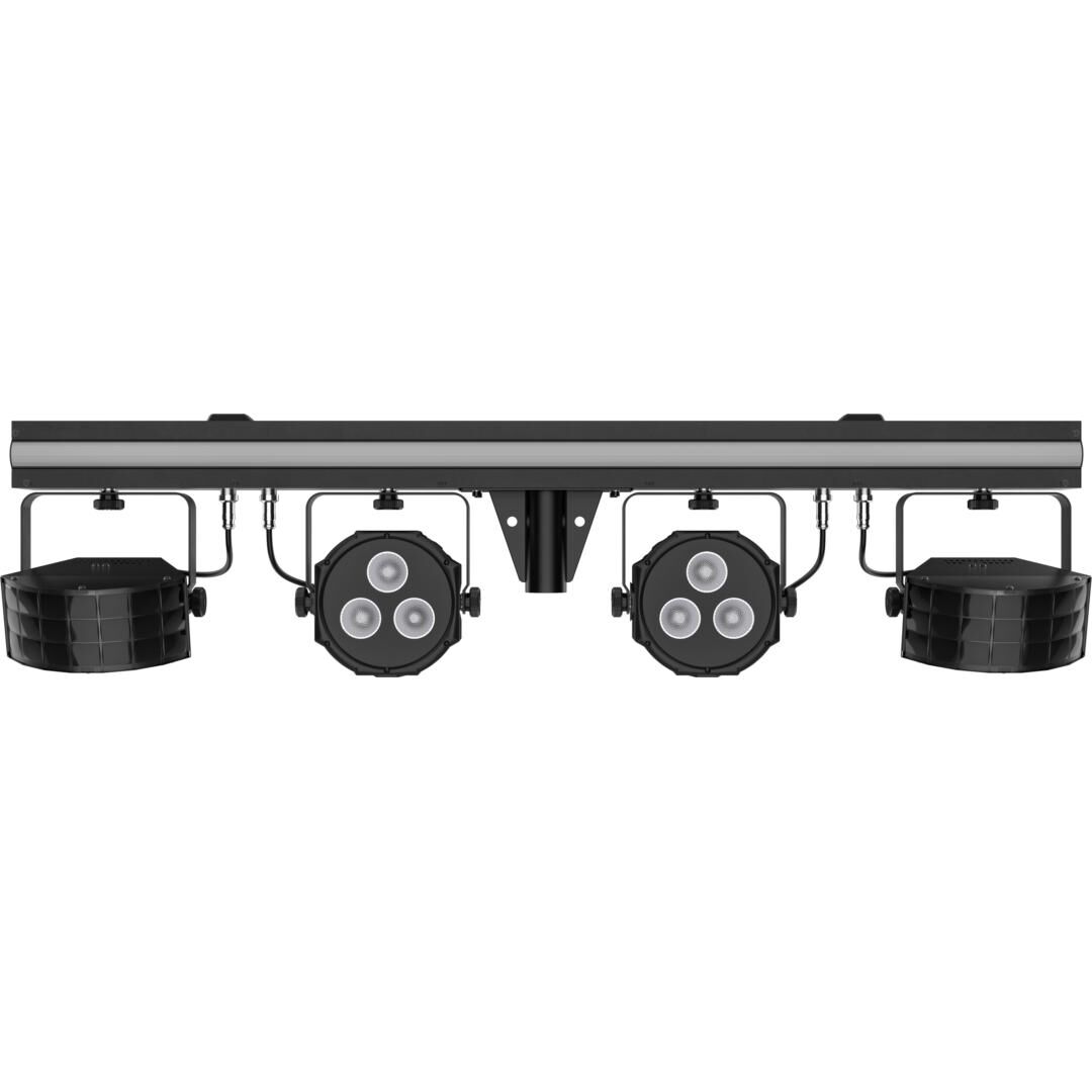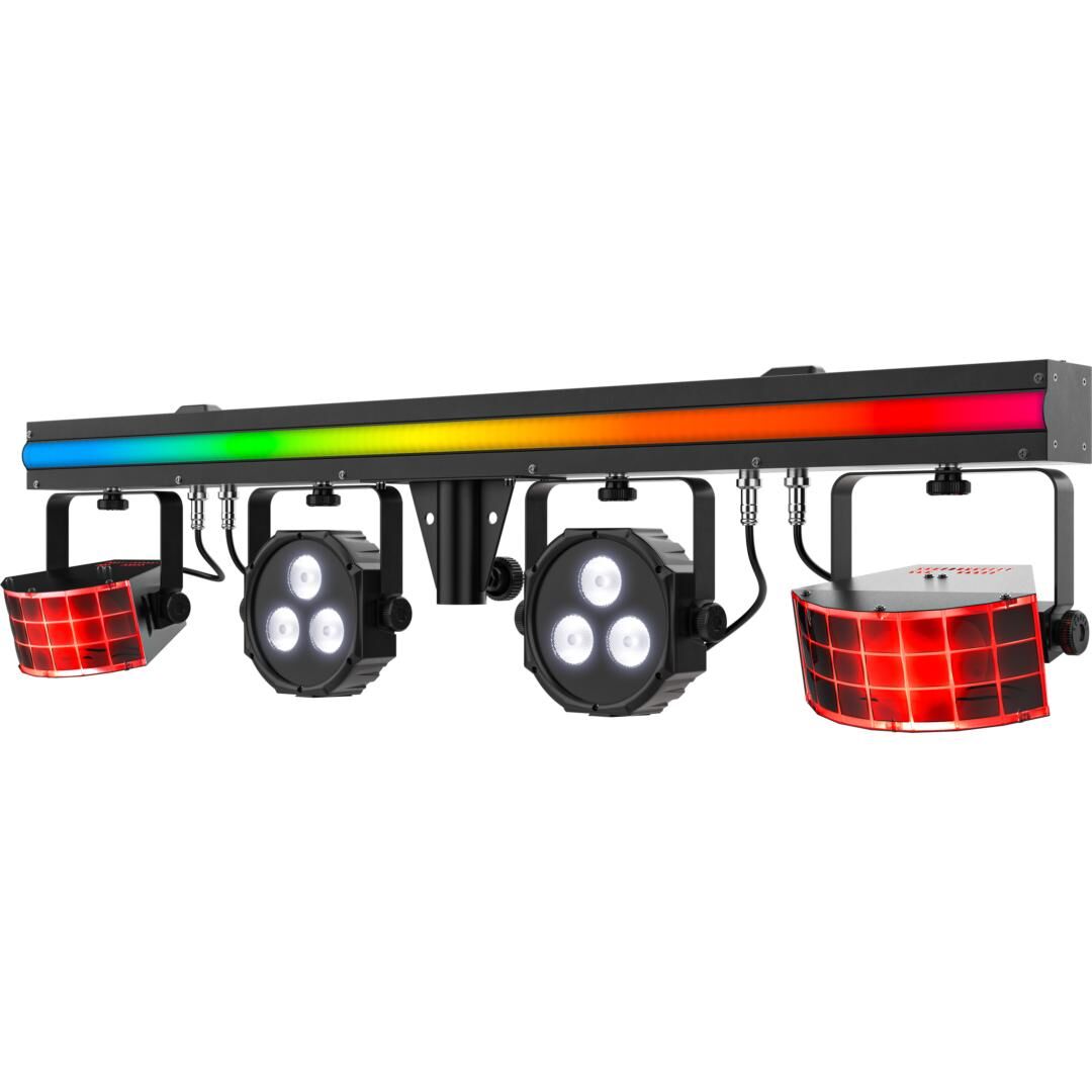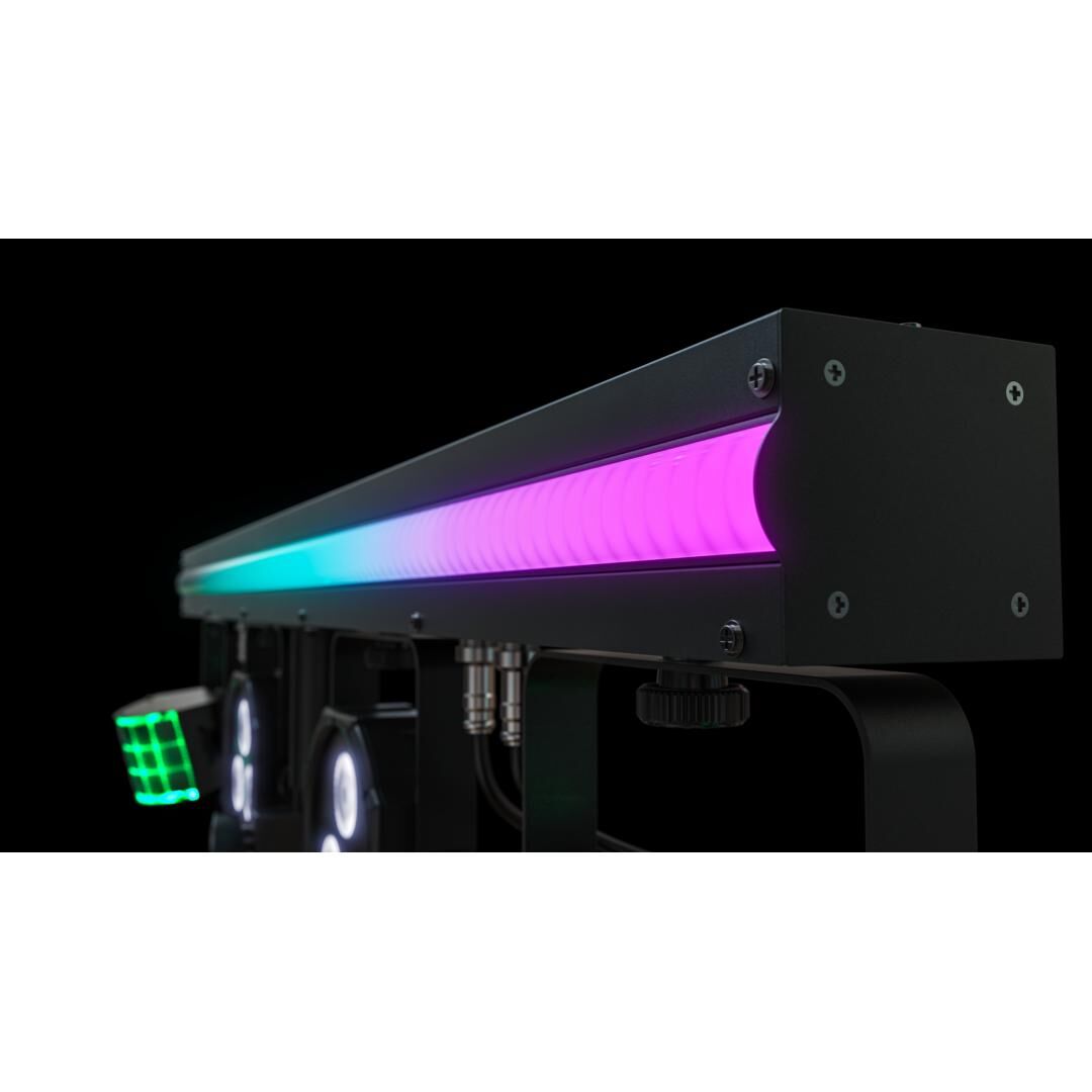 - 3-in-1-ILS-System: LED Derbys, LED Pars (RGB+UV) und durchgehende LED-RGB-Stripe auf einer Bar
