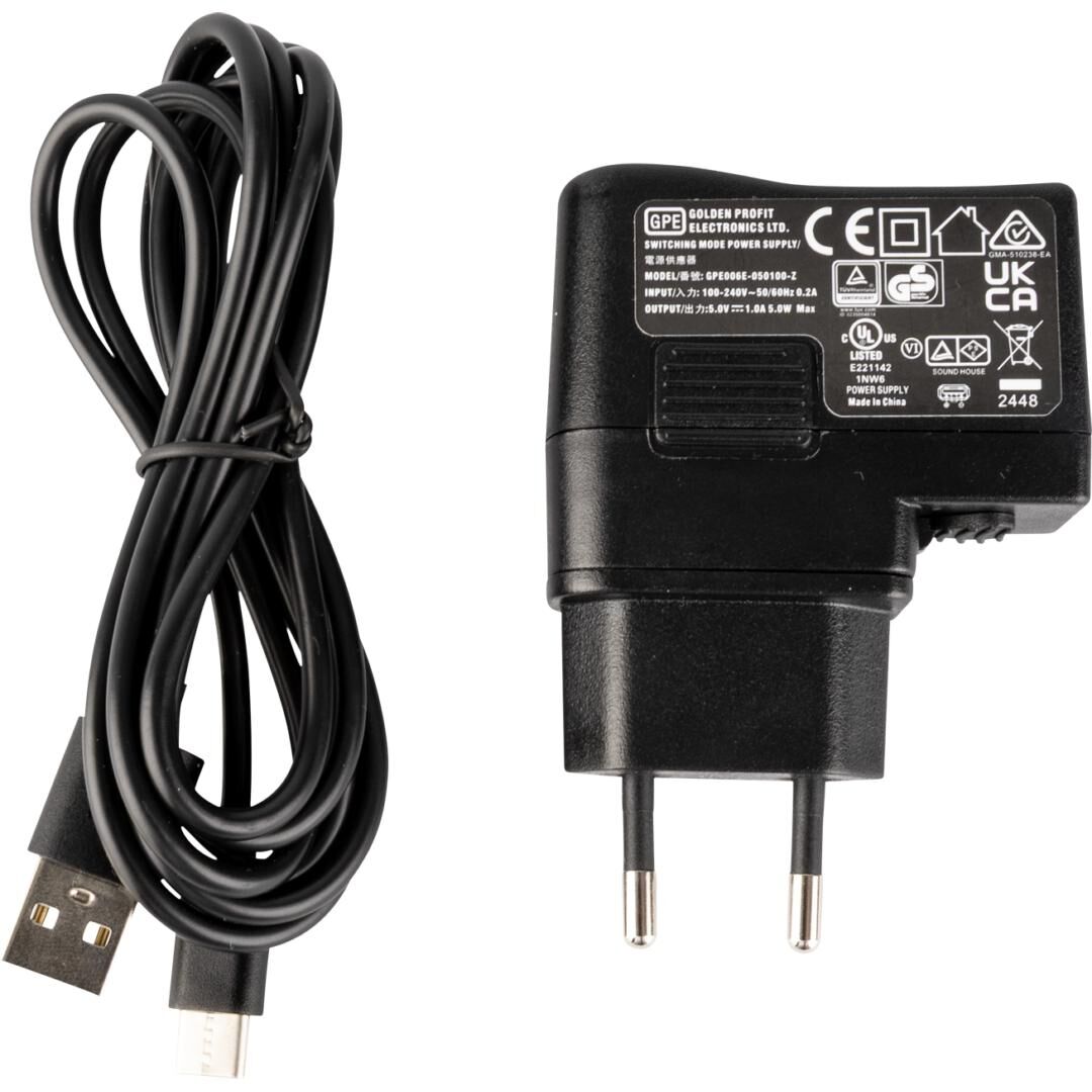 - Netzadapter: USB-Adapter, Ausgang 5 V DC (im Lieferumfang)