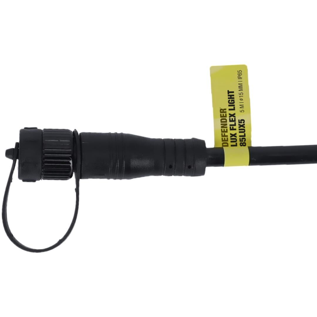 Mit 120 LEDs pro Meter, einer Gesamtleistung von 25 W auf 5 m Nutzlänge und zwei praktischen 15-cm-Anschlussleitungen (Ein- und Ausgang) lässt sich der DEFENDER LUX LED FLEX Light unkompliziert integrieren und erweitert bestehende Sicherheits- und Lichtkonzepte um eine effiziente, gut sichtbare Komponente.