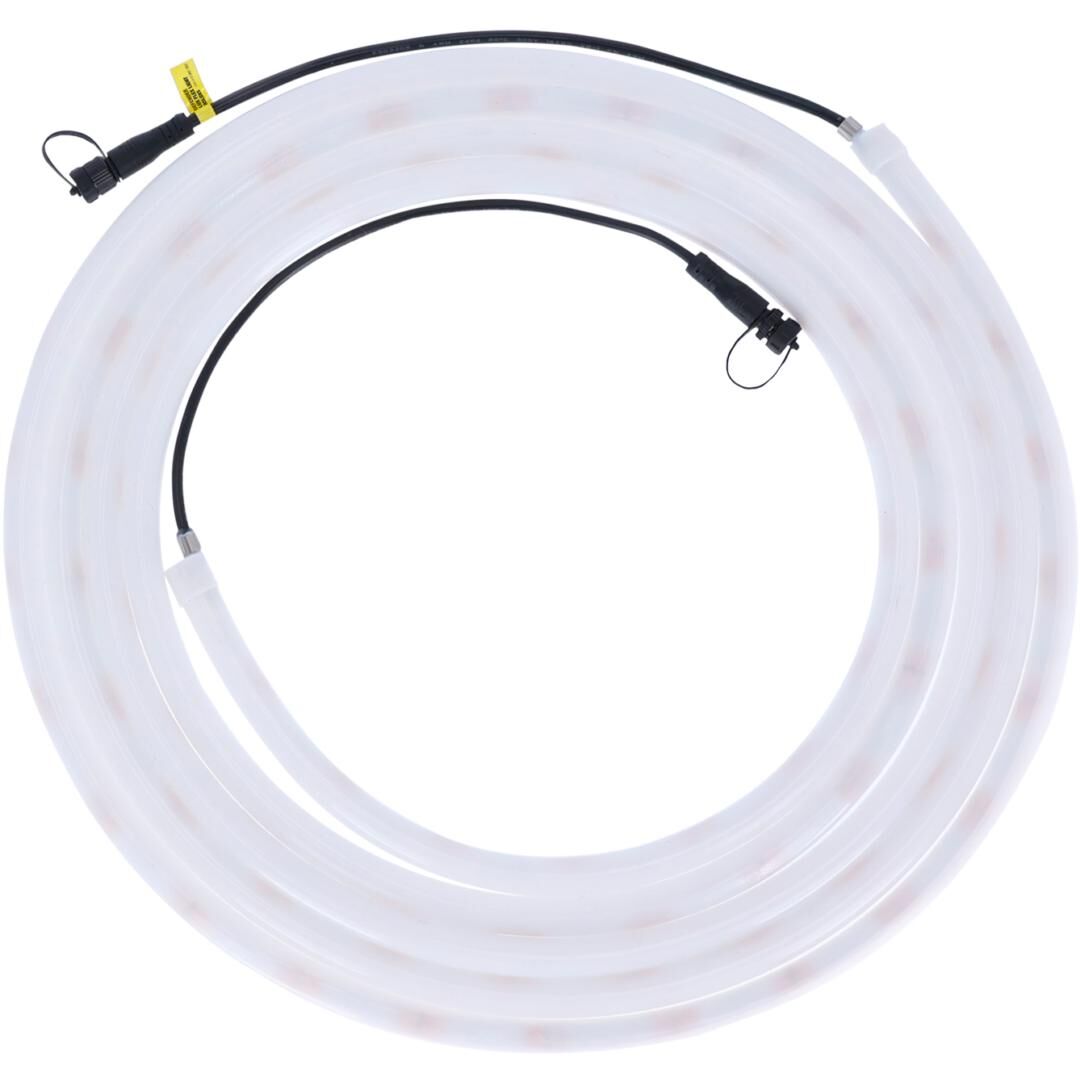 Mit einer 270° Rundumabstrahlung liefert der Lichtschlauch eine breite, homogene Lichtverteilung. Die warmweiße Lichtfarbe (4.000 K) bietet eine angenehme, zugleich gut wahrnehmbare Signalwirkung, damit Bühnenkanten, Treppen, Backstage-Zonen oder Arbeitsbereiche zuverlässig erkannt werden. Das Ergebnis: mehr Sichtbarkeit und ein Plus an Sicherheit für Personal und Publikum.