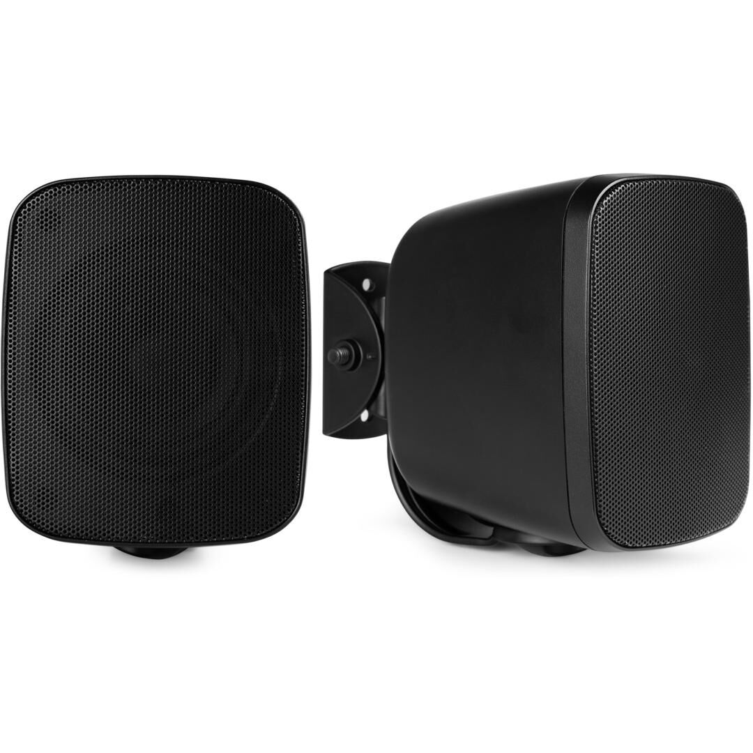Für die Installation liegt eine Metall-Wandhalterung bei. Die Lautsprecher können horizontal oder vertikal montiert werden, wodurch sich die Abstrahlung optimal an die Umgebung anpassen lässt. Durch die kompakten Abmessungen fügen sie sich unauffällig in Fassaden, Überdachungen oder Innenräume ein – ein praktischer Vorteil für Restaurants, Lobbys oder private Außenbereiche, in denen die Technik dezent bleiben soll.