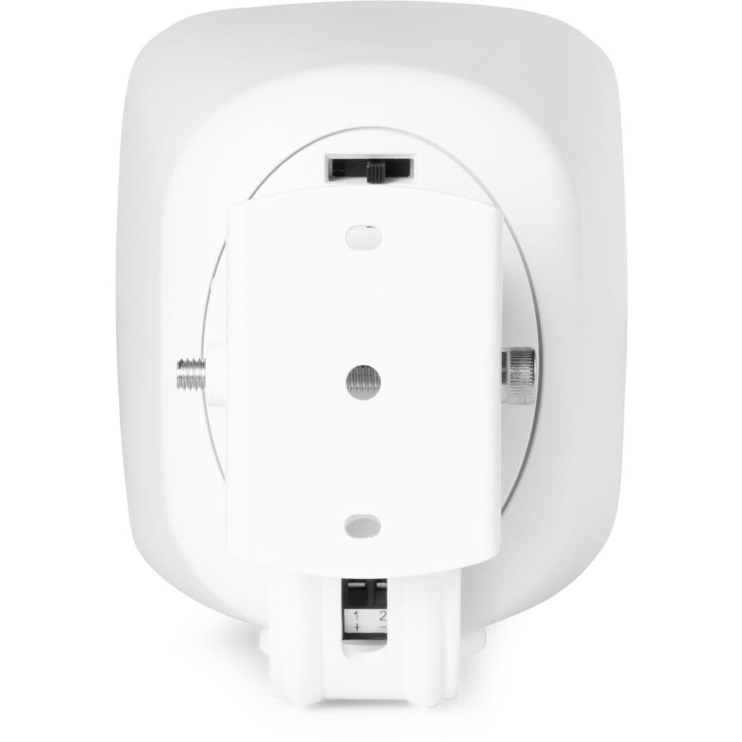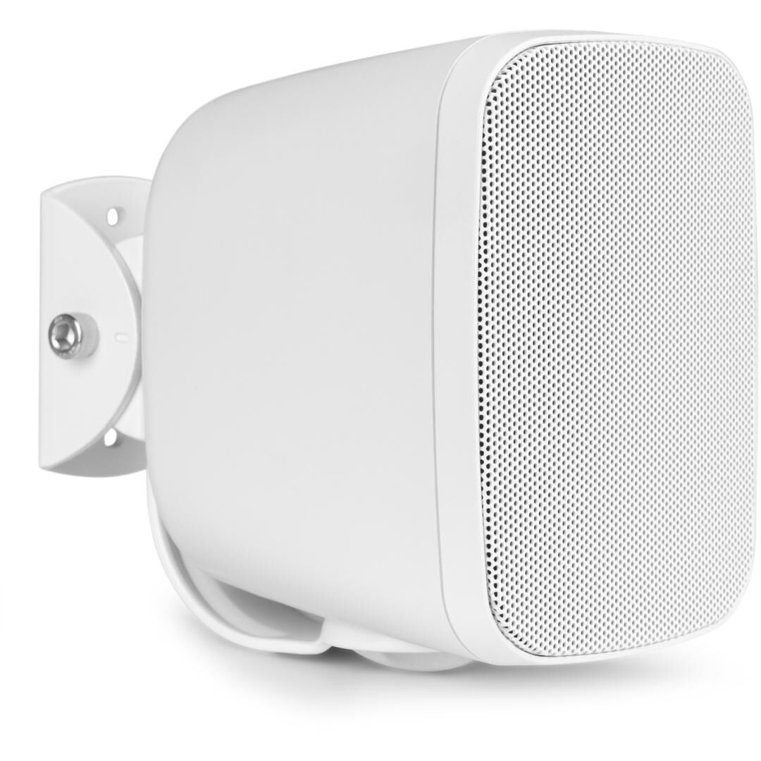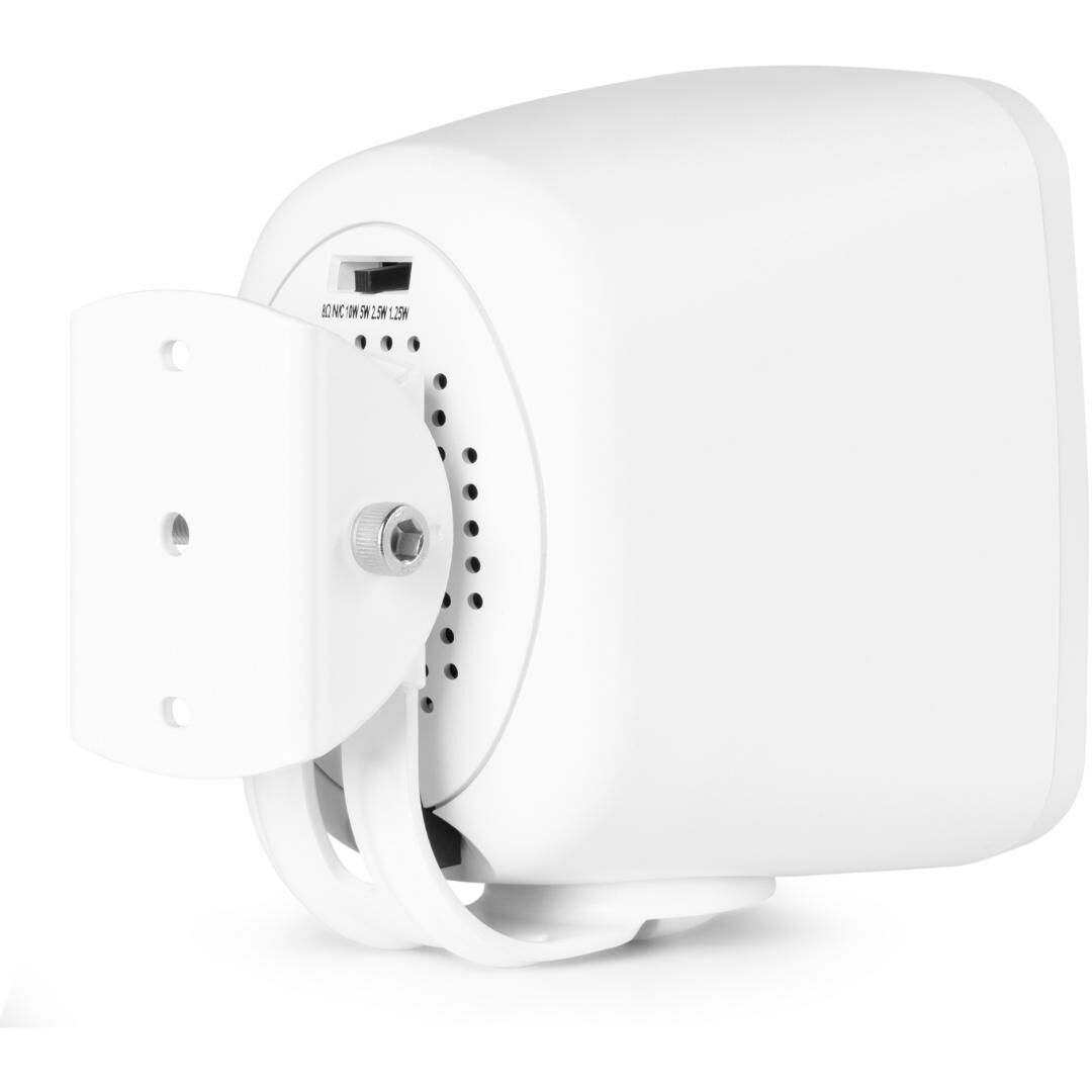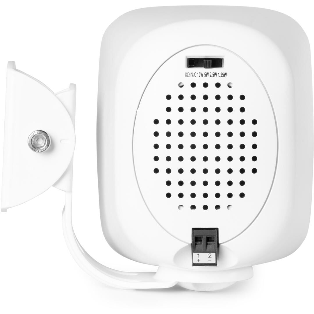 Die Montage gestaltet sich einfach: Die mitgelieferte Metall-Wandhalterung ermöglicht eine horizontale oder vertikale Ausrichtung. So lässt sich der Abstrahlwinkel an die Umgebung anpassen – beispielsweise entlang von Fluren, unter Vordächern, an Terrassenwänden oder Relings. Dank der kompakten Bauform (140 x 100 x 122 mm) fügt sich der Lautsprecher unauffällig in unterschiedlichste Architekturen ein.