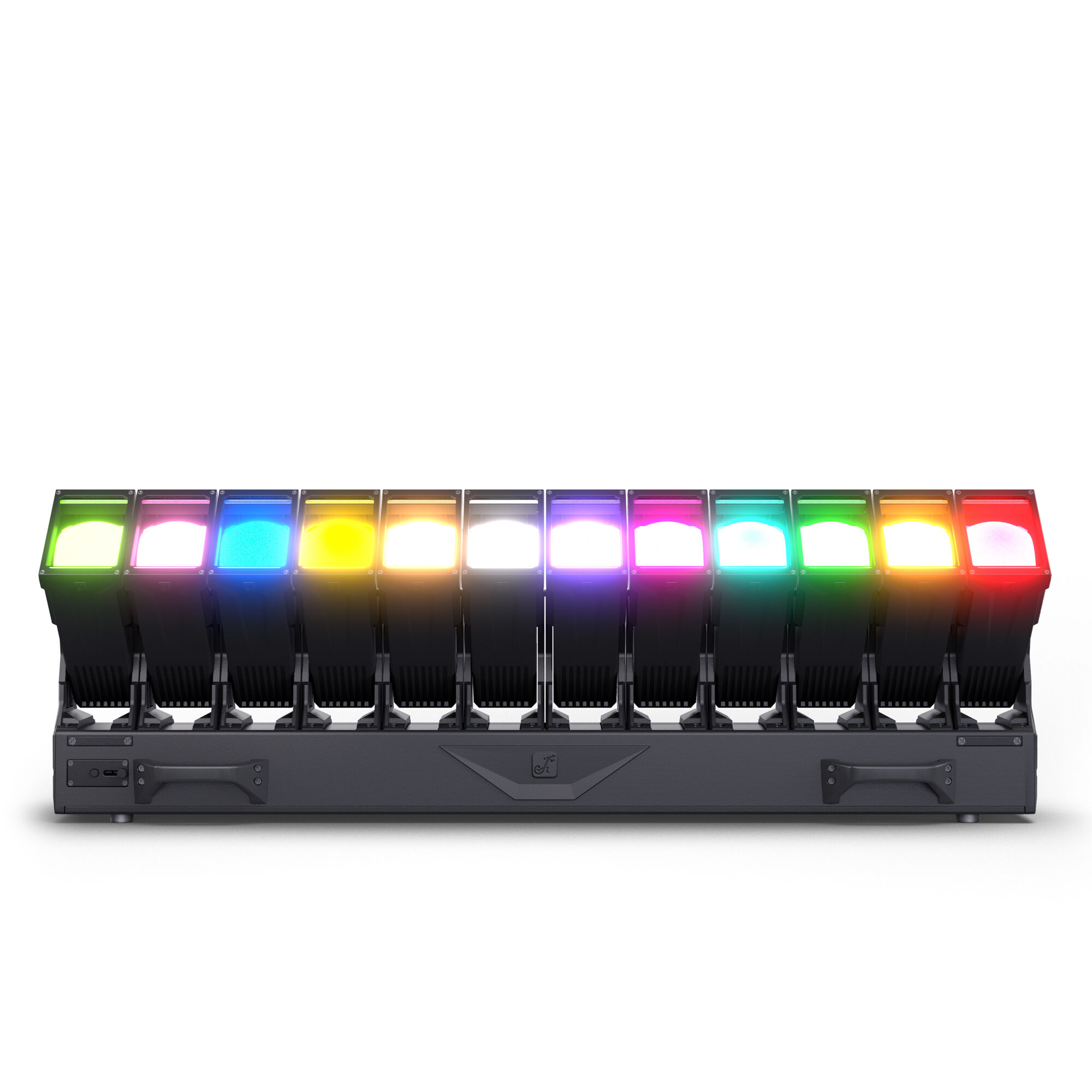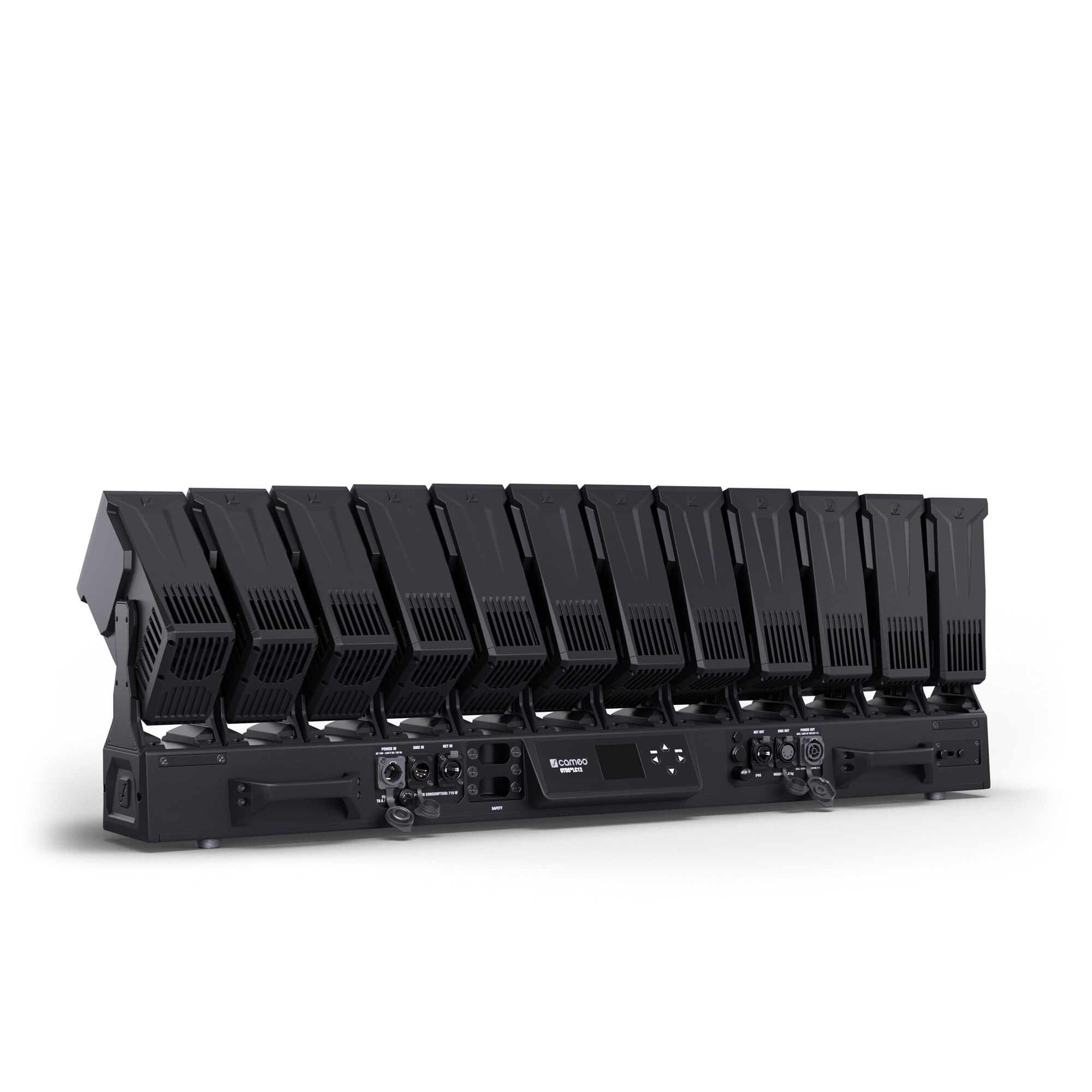 Die Cameo OTOS LC12 ist eine innovative IP65 Moving Bar, die das Wash-Portfolio durch Bewegung erweitert und Lichtdesign auf ein neues Level hebt. Mit 12 einzeln tilt- und zoombaren 50 W RGBL Moving Heads verwandelt sie Licht in fließende Formen und erzeugt spektakuläre Motion-Effekte. Das RGBL-Farbmischsystem sorgt für brillante Farben und kräftiges Weiß, während der weite CCT-Bereich von 1.800–10.000 K eine flexible Anpassung von warmem bis kühlem Weißlicht ermöglicht.