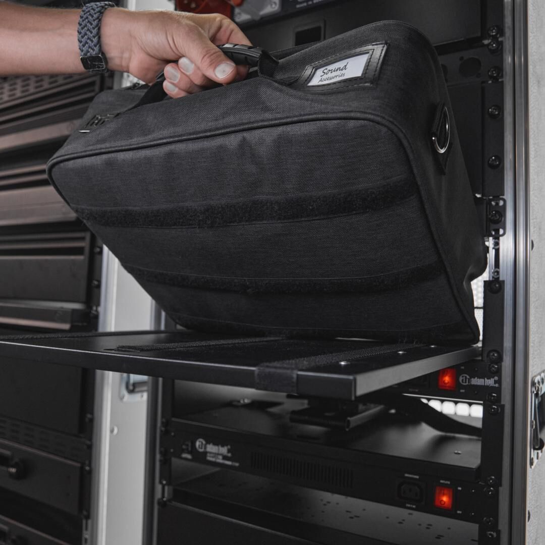 - Für 19"-Racks (3HE) konzipiert, sichere Fixierung per Klett-Loop am Taschenboden