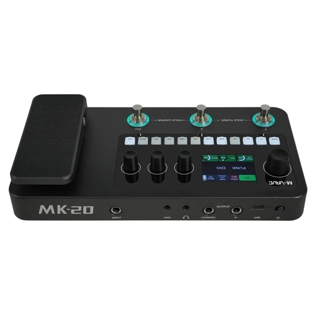 Der M-Vave MK-20 ist ein vielseitiges Multieffekt- und Amp-Simulator-Pedalboard für Gitarre und Bass. Mit über 320 Effekten und 150 fertigen Presets bietet es professionellen Sound in einem kompakten Format. Ideal für Musiker, die mobil und flexibel bleiben möchten, ohne auf Qualität zu verzichten.