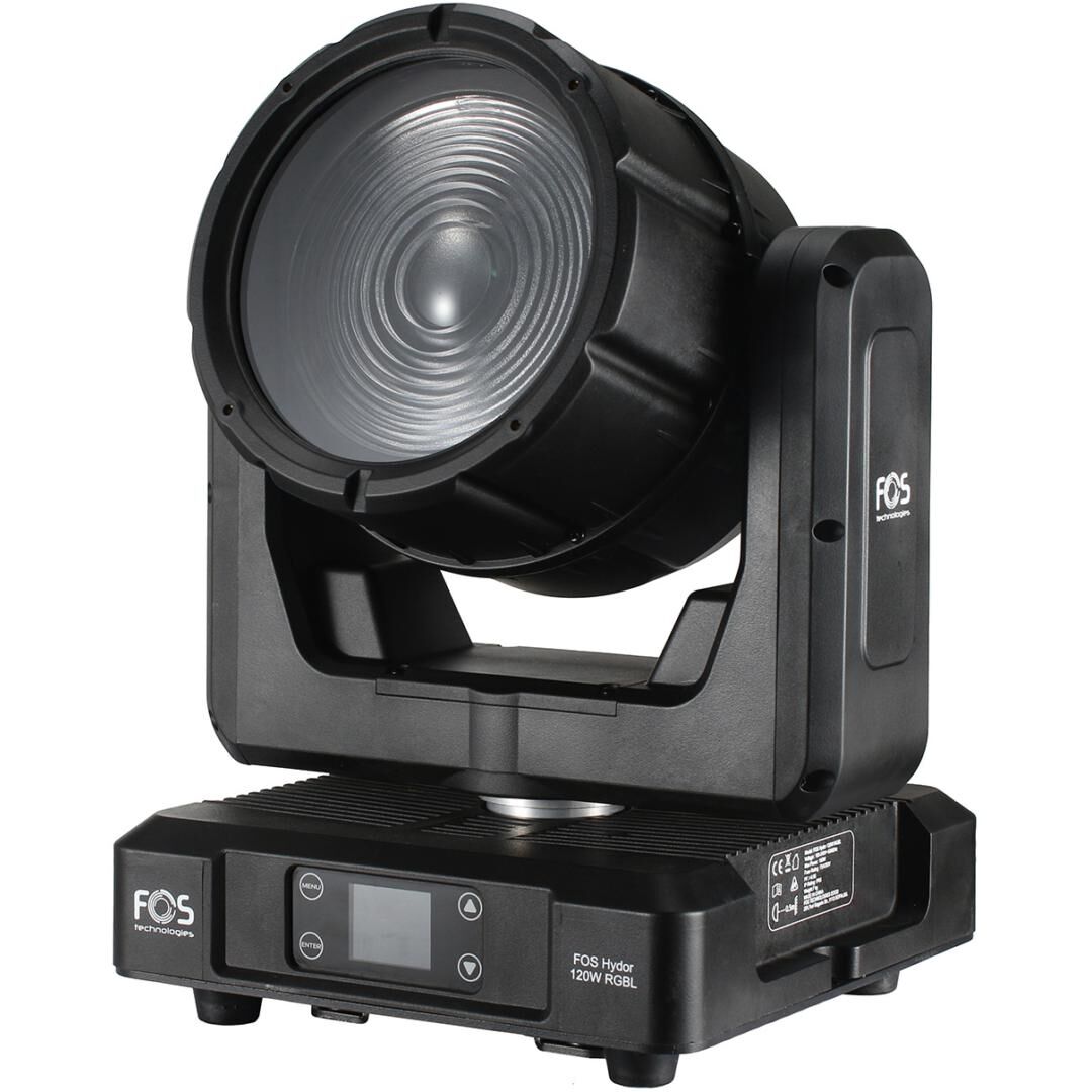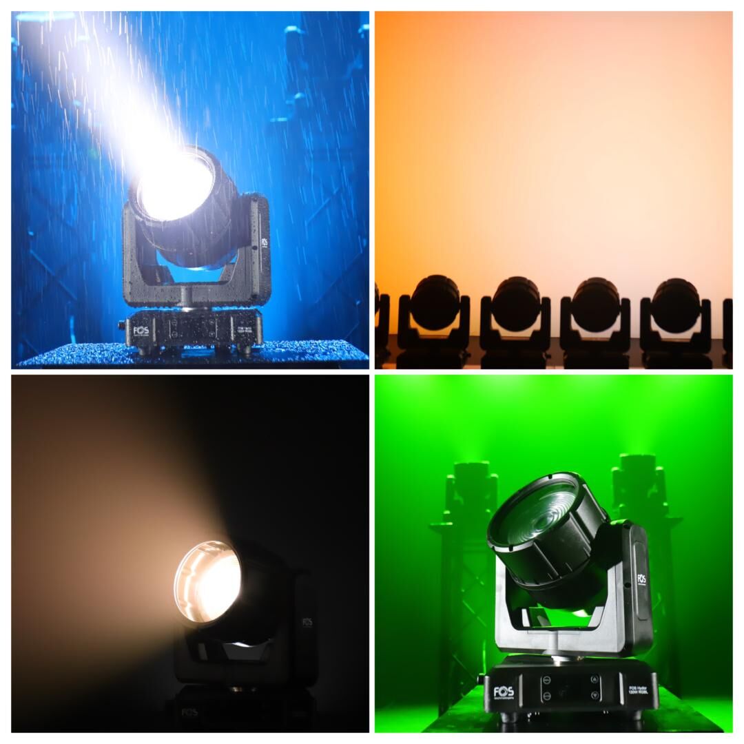 Der FOS Hydor 120W RGBL ist ein professioneller, kompakter Moving Head für den Einsatz im Innen- und Außenbereich. Mit einer leistungsstarken 120W RGB + Lime LED und einer 140 mm Glas-Fresnel-Linse bietet er sowohl einen präzisen Beam als auch eine gleichmäßige Wash-Lichtverteilung. Die IP66-Zertifizierung garantiert Zuverlässigkeit unter extremen Wetterbedingungen, während das Magnesium-Aluminium-Gehäuse für Langlebigkeit und Leichtigkeit sorgt.