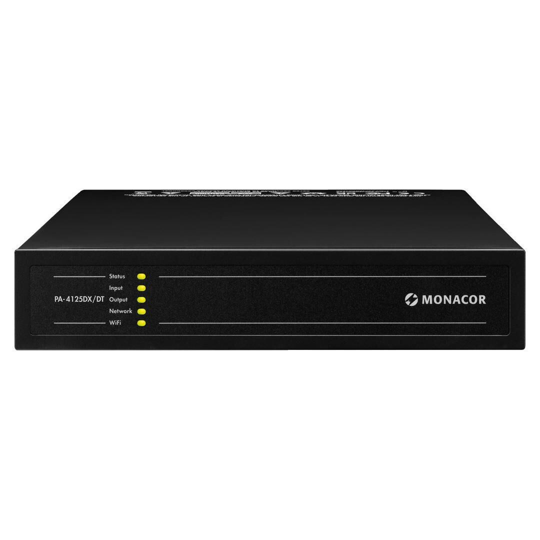 Der Monacor PA-4125DX/DT ist ein Dante-fähiger 4-Zonen-Multifunktionsverstärker in effizienter Class-D-Technik mit integriertem DSP. Er richtet sich an Installationen, die Audio über IP, flexible Signalverteilung und eine zentrale Steuerung benötigen – etwa in Gastronomie, Retail, Hotellerie, Bildungseinrichtungen, Unternehmensgebäuden oder Fitnessstudios. Mit seiner kompakten 1-HE-Bauform (44 mm Höhe) lässt er sich platzsparend im Rack unterbringen und skaliert von kleinen bis zu komplexen Multiroom-Setups.