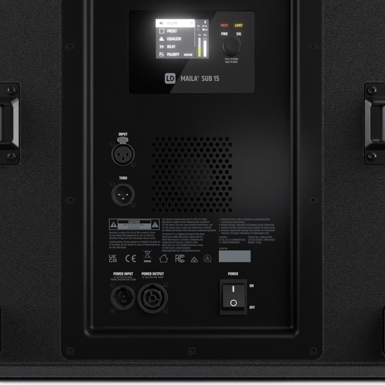 Der LD Systems MAILA SUB 15 ist ein kompakter, aktiver 15"-Bassreflex-Subwoofermit einer Gesamtausgangsleistung von 1,25 kW. Er bietet kontrollierte Bässe mit Punch und Definition für modernen Live-Sound. Der integrierte Leistungsverstärker mit SysCore® DSP sorgt für präzise Signalverarbeitung und optimale Klangqualität. Das Bassreflex-Design mit optimierter Luftströmung gewährleistet eine effiziente Schallabstrahlung.