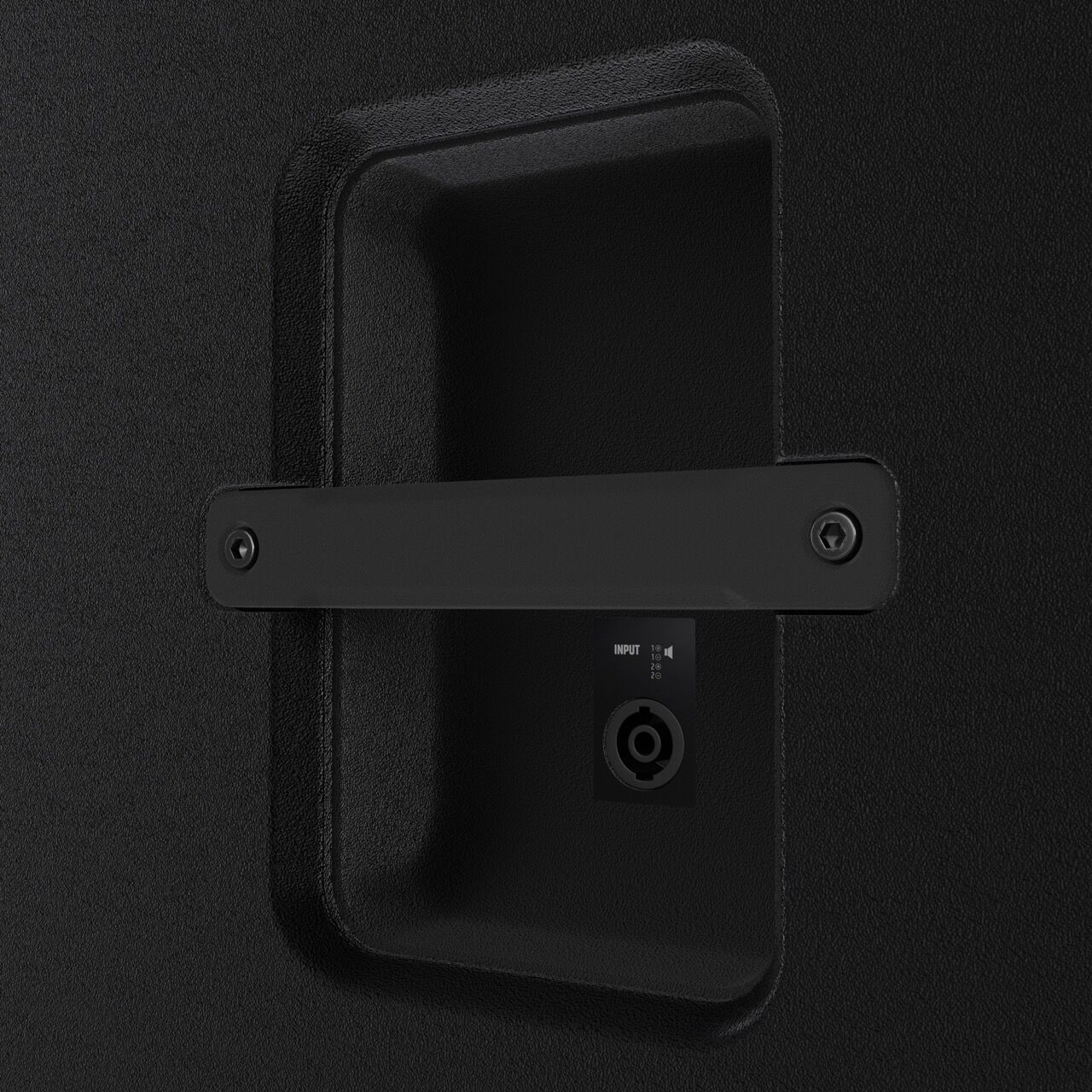 - In die seitliche Griffmulde integrierter SpeakON-Eingang