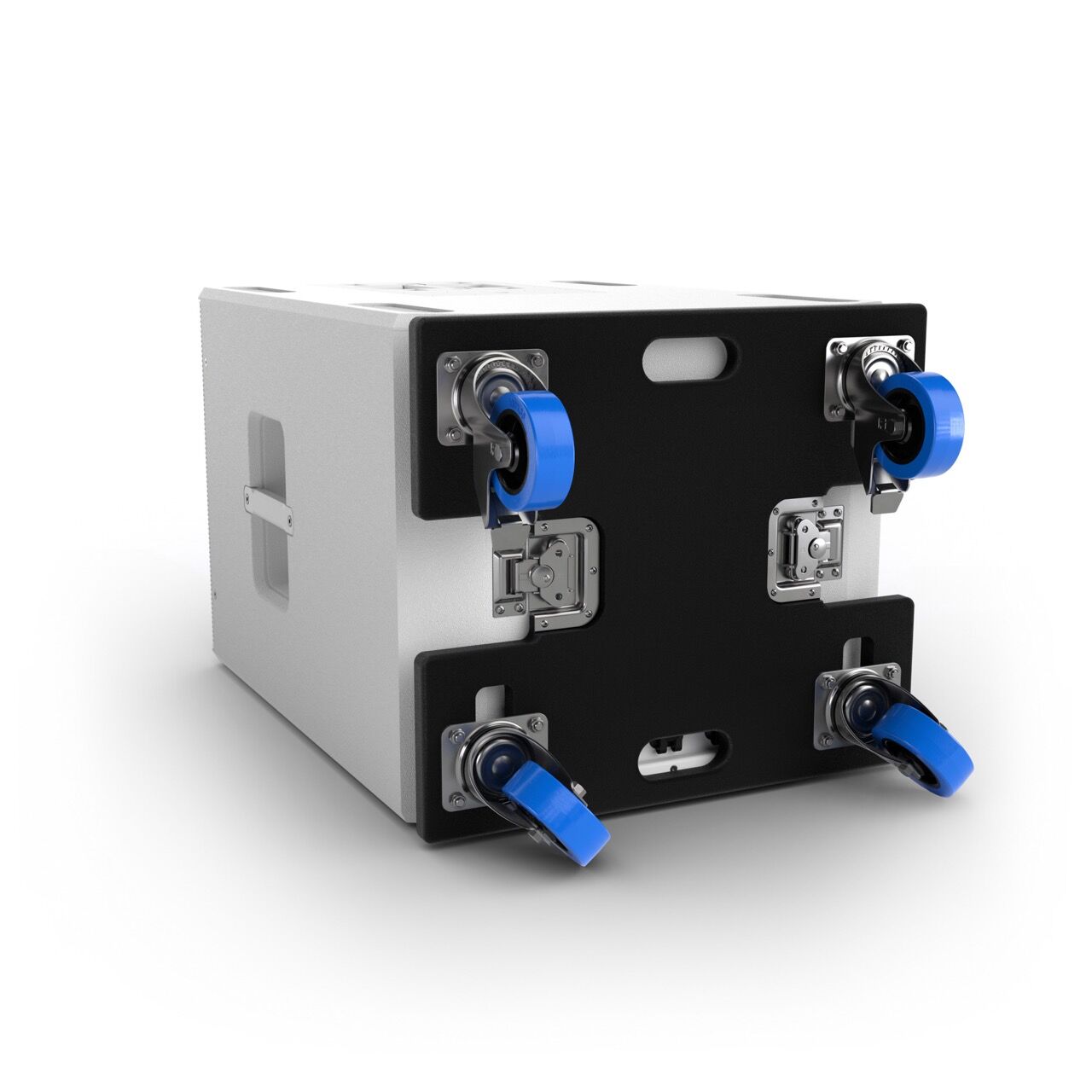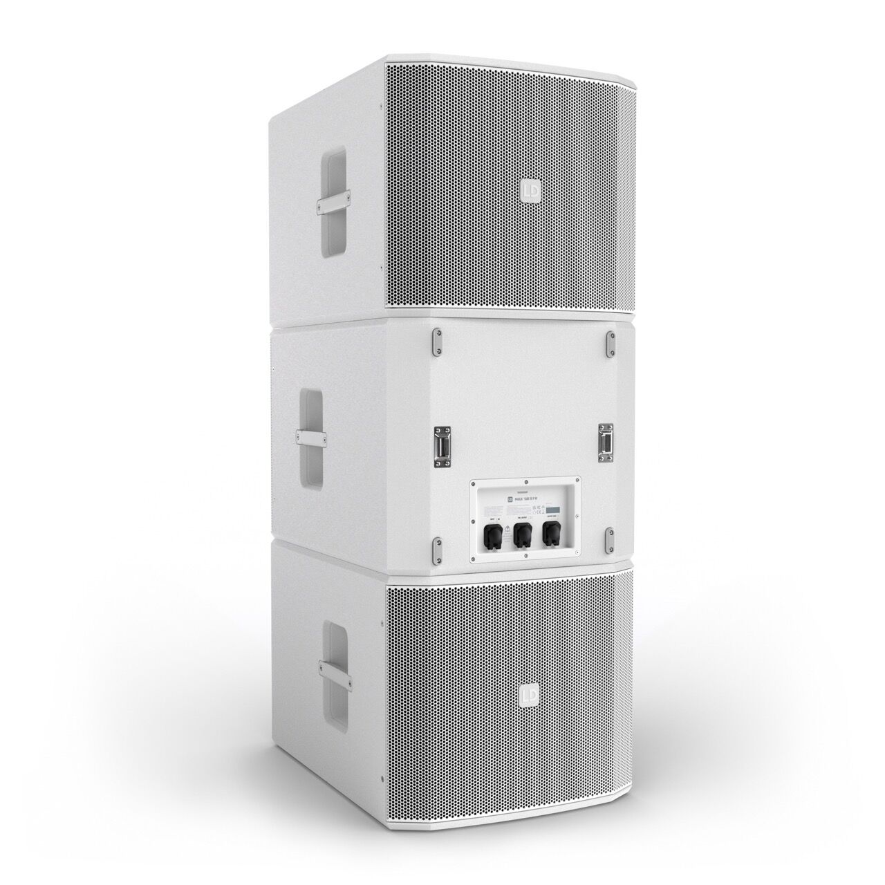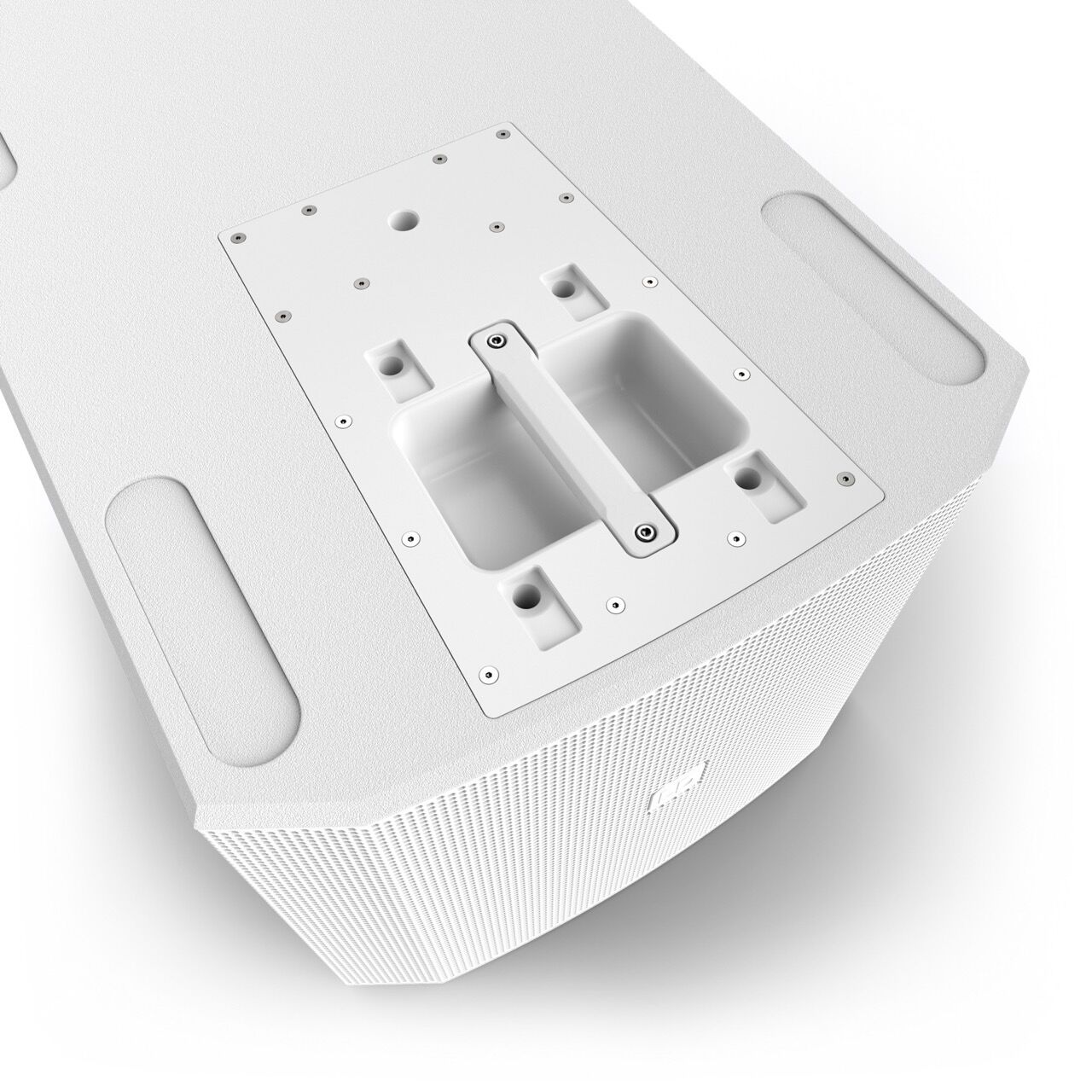 Der MAILA SUB 15 P W unterstützt Ground-Stack-Konfigurationen mit bis zu drei Einheiten, was eine flexible und skalierbare Nutzung ermöglicht. Die Andockplatte auf der Oberseite erlaubt die Befestigung einer M20-Distanzstange oder eines MAILA COL, während der SpeakON-Eingang in die seitliche Griffmulde integriert ist, um eine saubere Verkabelung auch bei Cardioid-Setups zu gewährleisten.
