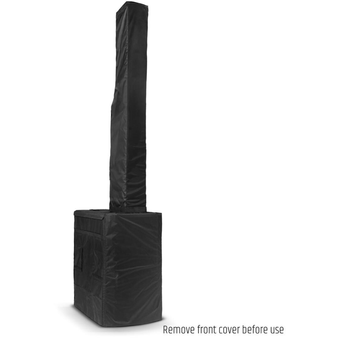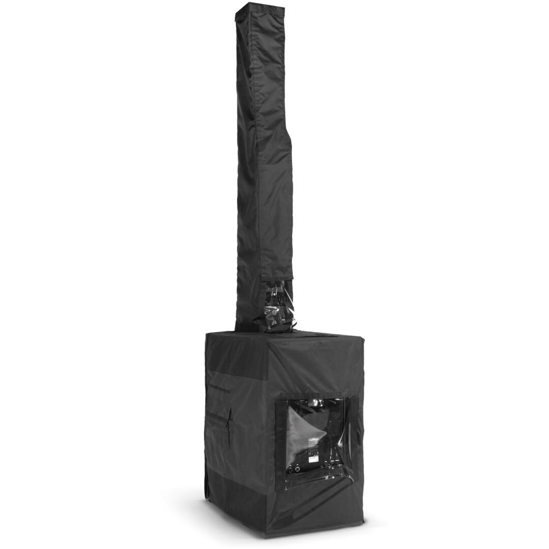 Für den Einsatz im Regen setzt LD Systems auf ein regenabweisendes Material und einen imprägnierten Akustikstoff an der Frontseite. So bleibt die Schallabstrahlung des Systems funktionsgerecht, während das Innenleben zuverlässig vor Nässe geschützt wird. Ein integriertes Klarsichtfenster ermöglicht den direkten Blick auf das Bedienpanel – für schnellen Zugriff auf die Einstellungen, Statusanzeigen und Verkabelung, ohne das Cover entfernen zu müssen.