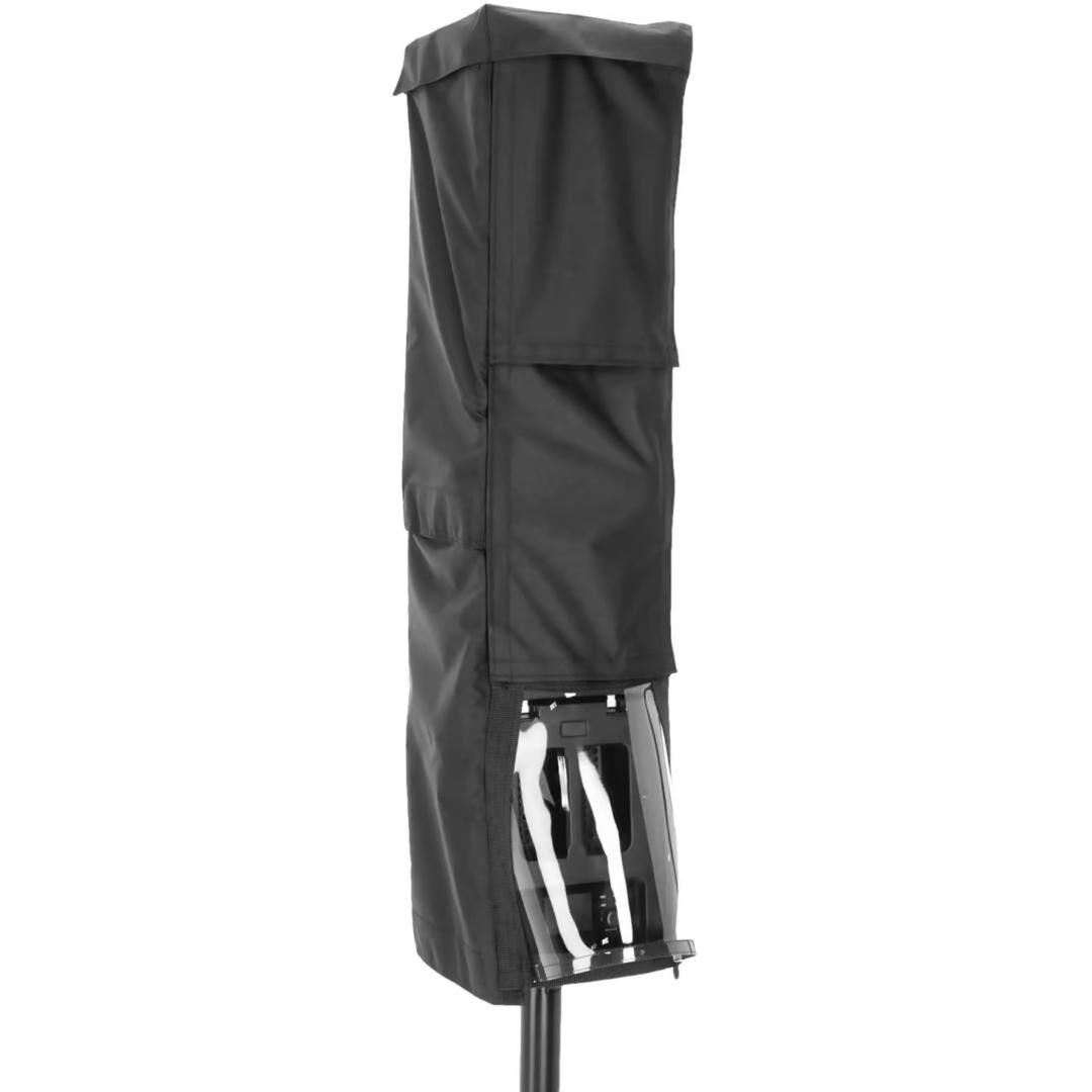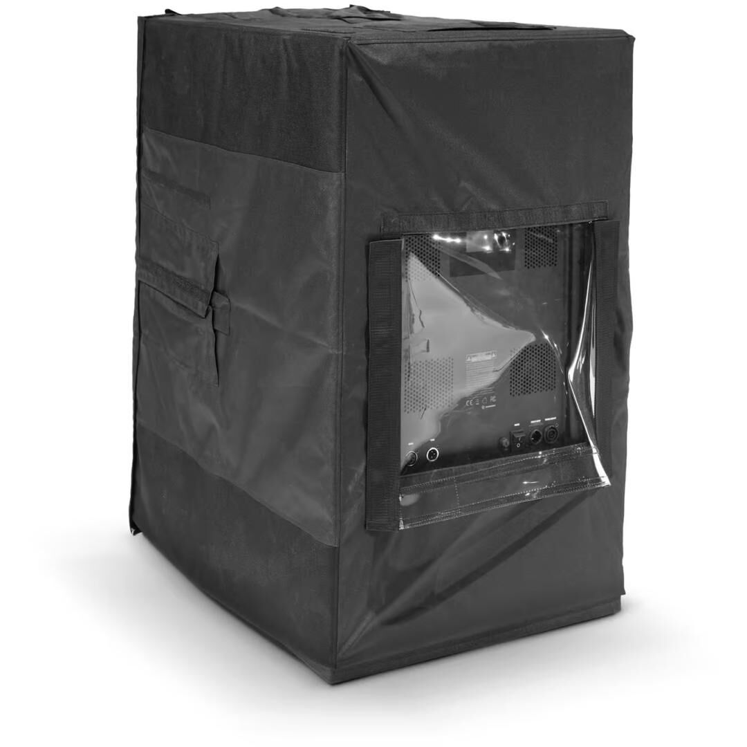 Gefertigt aus robustem, regenabweisendem PES (Polyethersulfon) und mit imprägniertem Akustikstoff an der Front, sorgt das Material für wetterfesten Schutz bei gleichzeitigem Erhalt der akustischen Performance. Ein integriertes Klarsichtfenster ermöglicht jederzeit den Blick auf das Bedienpanel und gewährleistet zugleich eine ausreichende Belüftung der Amp-Einheit – praktisch bei hektischen Umbauten oder wechselnden Bedingungen im Außeneinsatz.