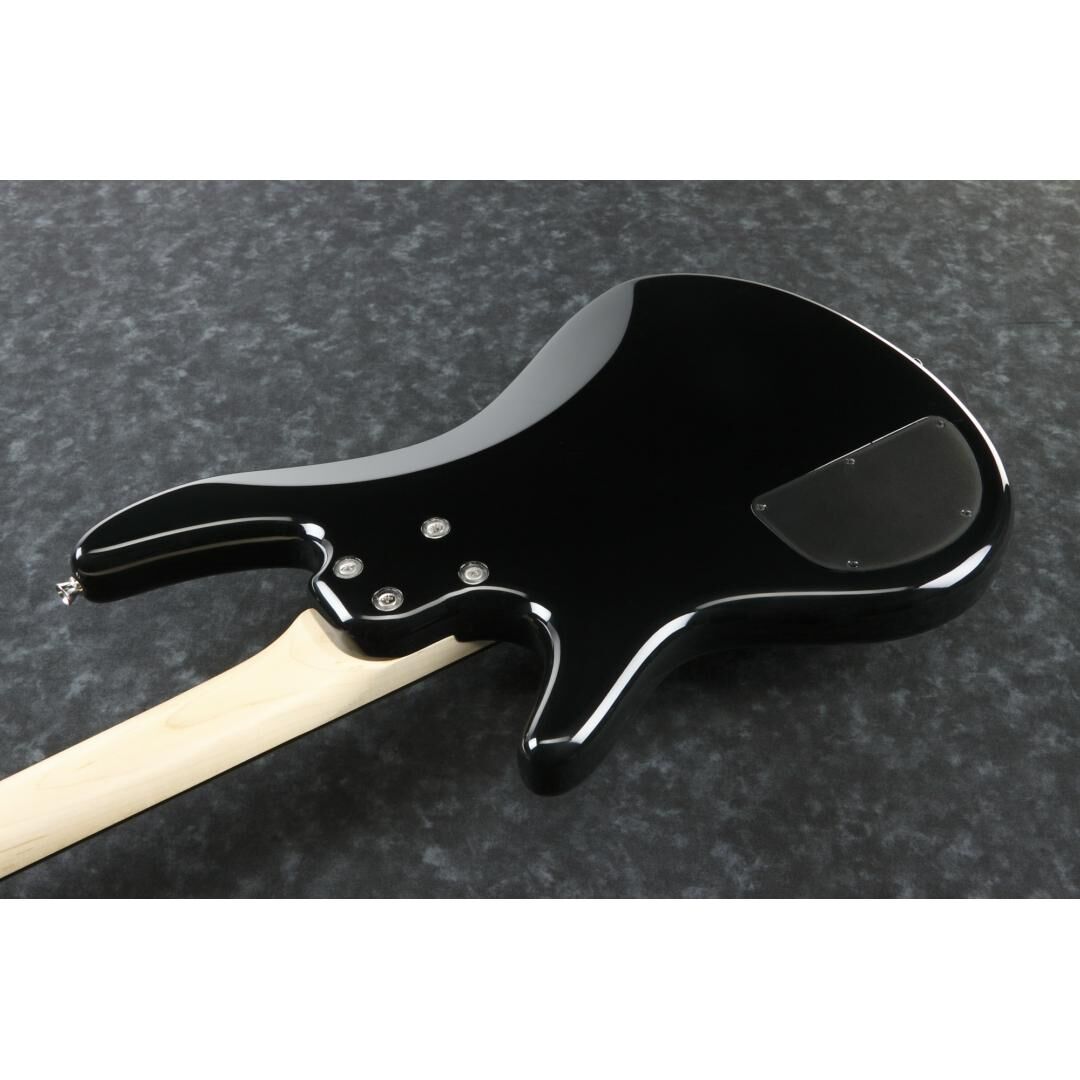 Der Korpus aus Pappel sorgt für ein angenehmes Gewicht und einen ausgewogenen Grundsound. Das schwarze Gloss-Polyurethan-Finish ist pflegeleicht und widerstandsfähig. Der verschraubte Ahornhals mit satinierter Oberfläche liegt angenehm in der Hand und begünstigt schnelle Lagenwechsel. Das schlanke GSR4-Profil, 864 mm Mensur (Long Scale) sowie 22 Medium-Bünde auf dem Purpleheart-Griffbrett mit 305 mm Radius bieten eine griffige, präzise Spielbasis, die sich sowohl für Fingerstyle als auch für Plektrum und Slap-Techniken eignet.