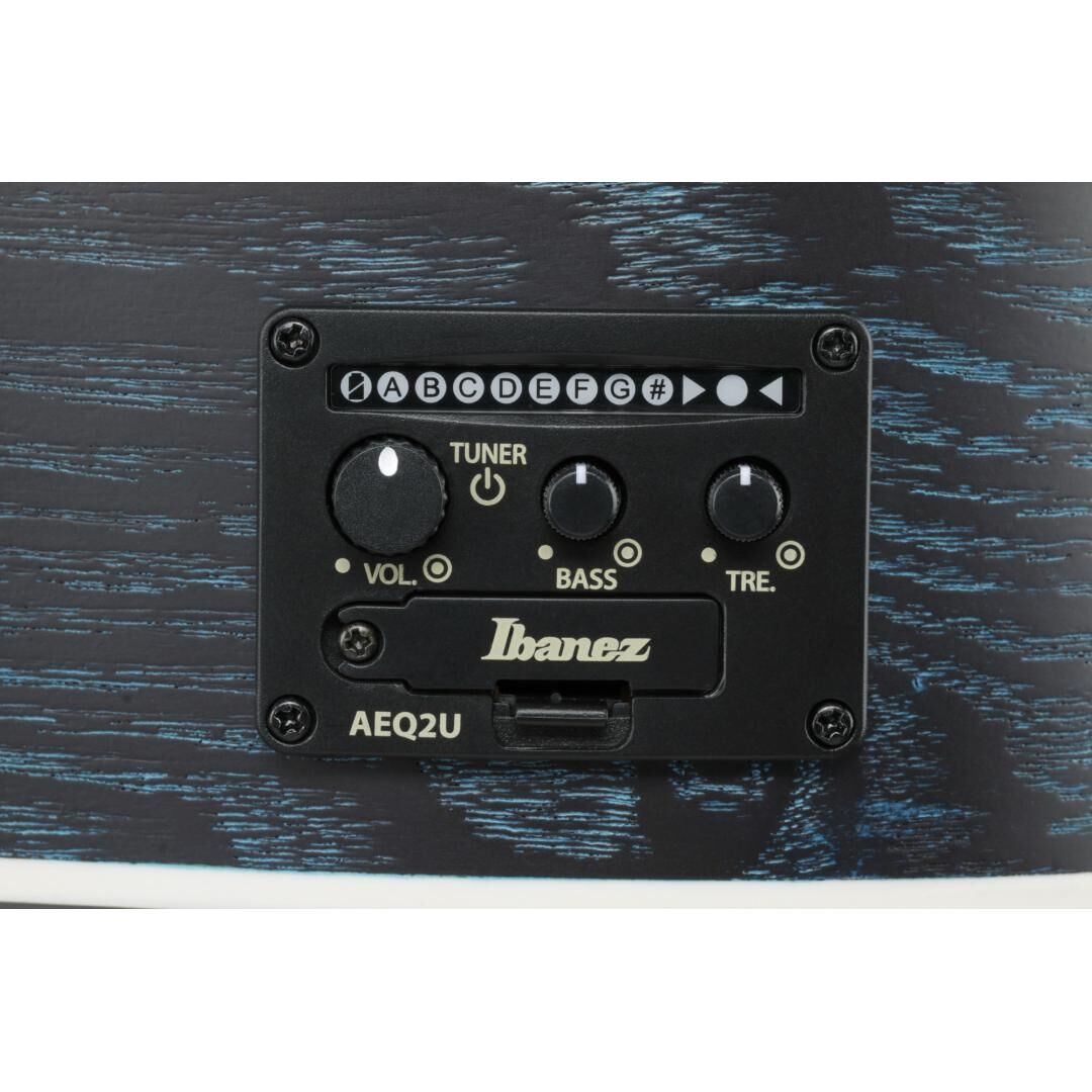 Für den verstärkten Einsatz ist ein Ibanez Undersaddle-Tonabnehmer in Kombination mit dem AEQ-2U/AEQ2U Preamp an Bord. Der integrierte Tuner, eine Lautstärkeregelung sowie Bässe- und Höhen-EQ erlauben eine schnelle Anpassung an Raum und Setup. Über die 1/4" Endpin-Klinkenbuchse lässt sich die Gitarre problemlos an Akustik-Amps, PAs oder Audio-Interfaces anschließen.