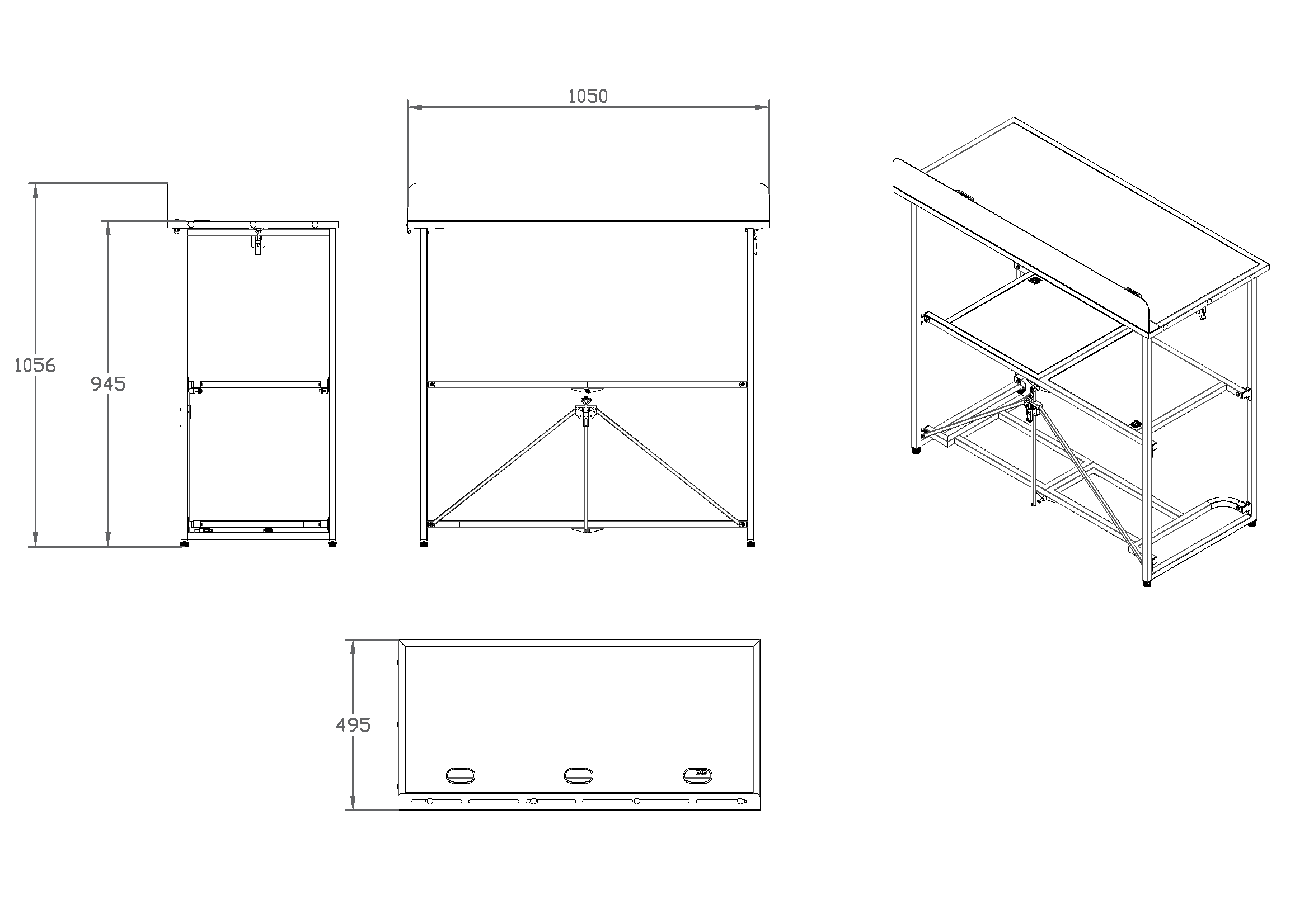 - Abmessungen (L x B x H): 1050 x 510 x 1056 mm