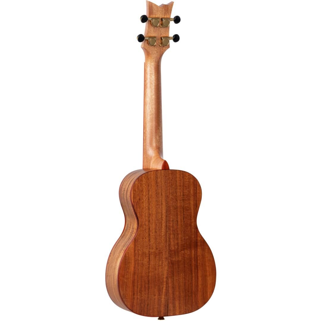 Die Ukulele ist mit einem Hals aus Okoume und einem Griffbrett aus Tecwood ausgestattet, was für eine angenehme Spielbarkeit sorgt. Die goldenen Die-Cast-Stimmmechaniken mit schwarzen Knöpfen sorgen für eine präzise Stimmung und eine lange Haltbarkeit. Die Ukulele wird mit einer passenden Tasche geliefert, die sie vor Beschädigungen schützt.