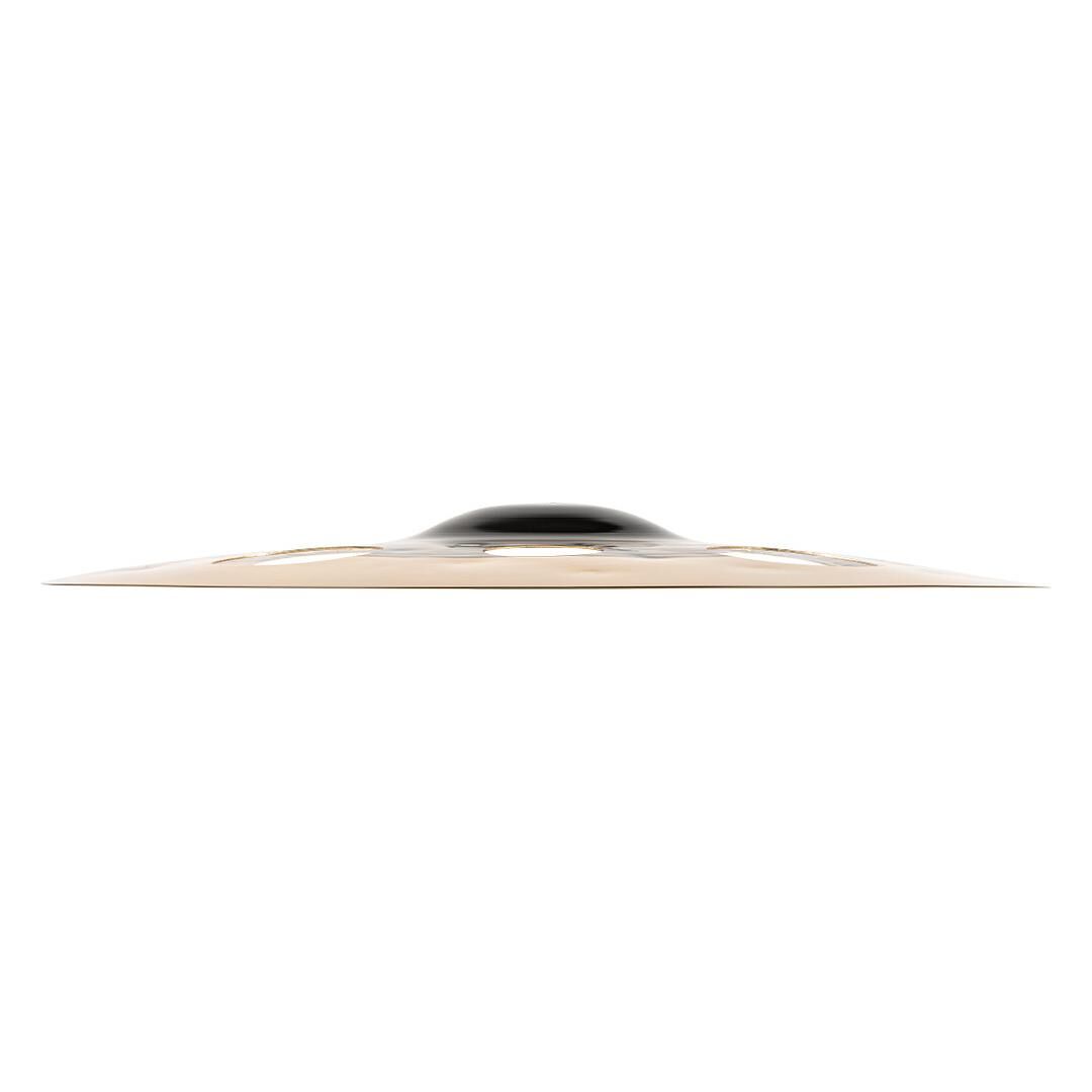Optisch fällt das Becken sofort durch seine Dual-Finish-Veredelung auf: Ein dunkles Zentrum trifft auf eine vollständig abgedrehte und perfekt polierte Außenkante. Diese Kombination ist nicht nur ein Blickfang auf jeder Bühne, sie unterstützt auch den spezifischen Klangcharakter – fokussiert im Kern, offen und bissig am Rand. Die breit und eng geführte Abdrehart (Wide Blade, Narrow Blade) trägt zur komplexen Obertonstruktur und definierter Projektion bei.