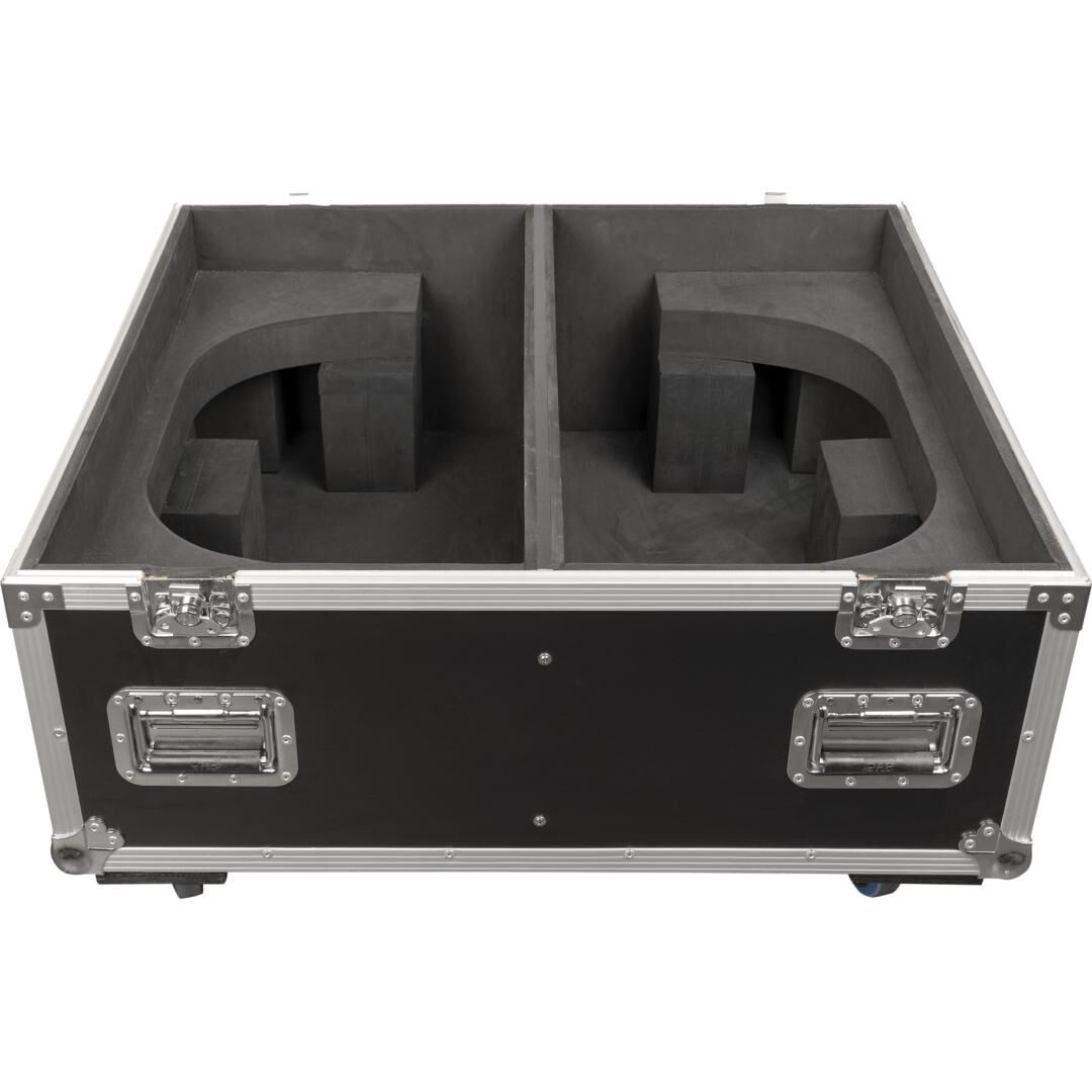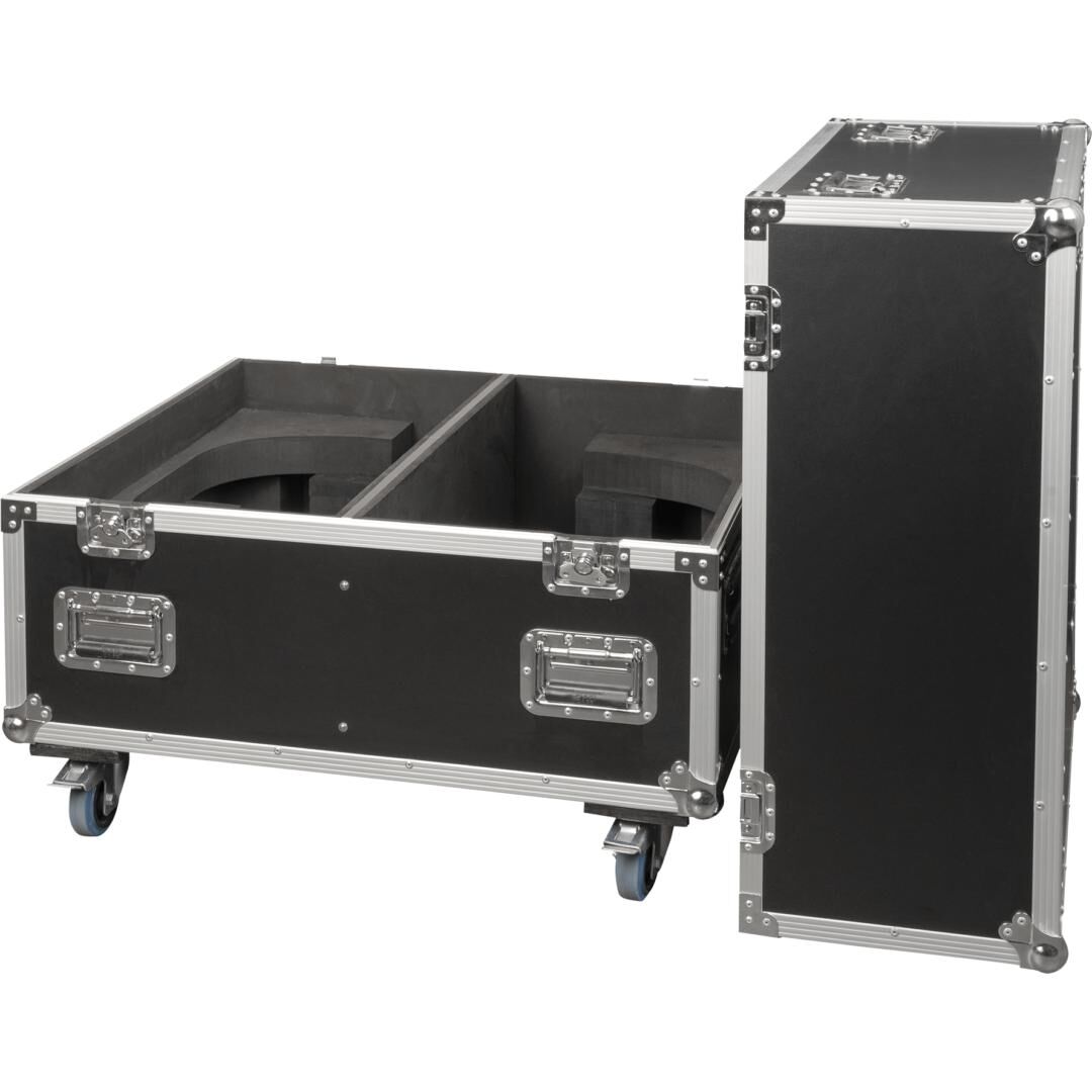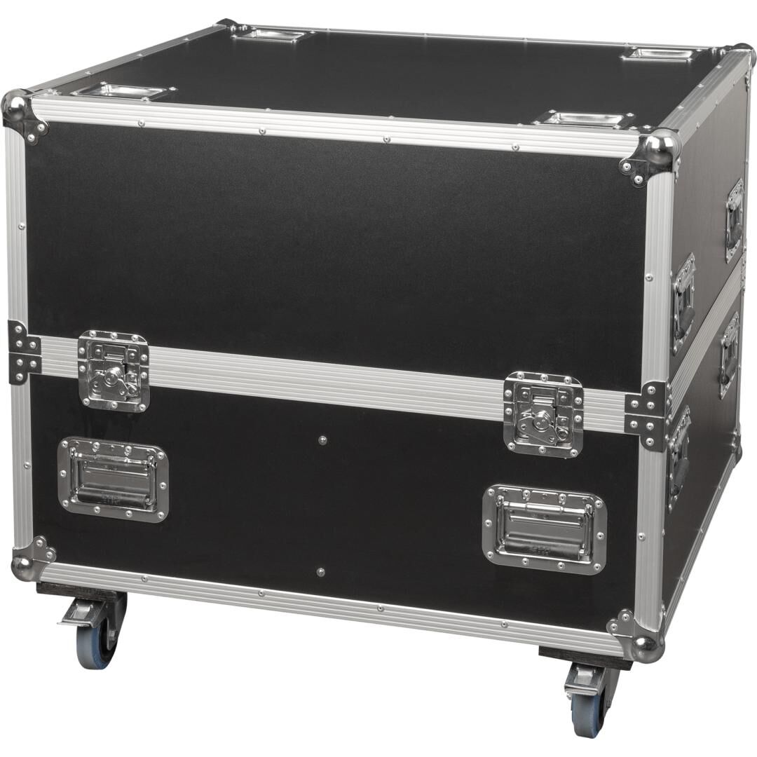 Für den mobilen Einsatz ausgelegt, erleichtern vier 100-mm-Lenkrollen mit Bremse das Handling auf der Bühne und im Lager. Versenkte Griffe an allen Seiten und Butterfly-Verschlüsse machen das Flightcase tourtauglich und praktisch im täglichen Vermiet- und Veranstaltungseinsatz. Das Case ist als Light Case konzipiert, IP20-klassifiziert (nur Innenbereich) und wiegt 44 kg.