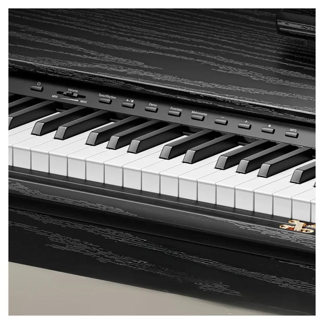 - Stilvolles schwarzes Holzfinish, das sich nahtlos in jeden Wohn- oder Übungsraum integriert
