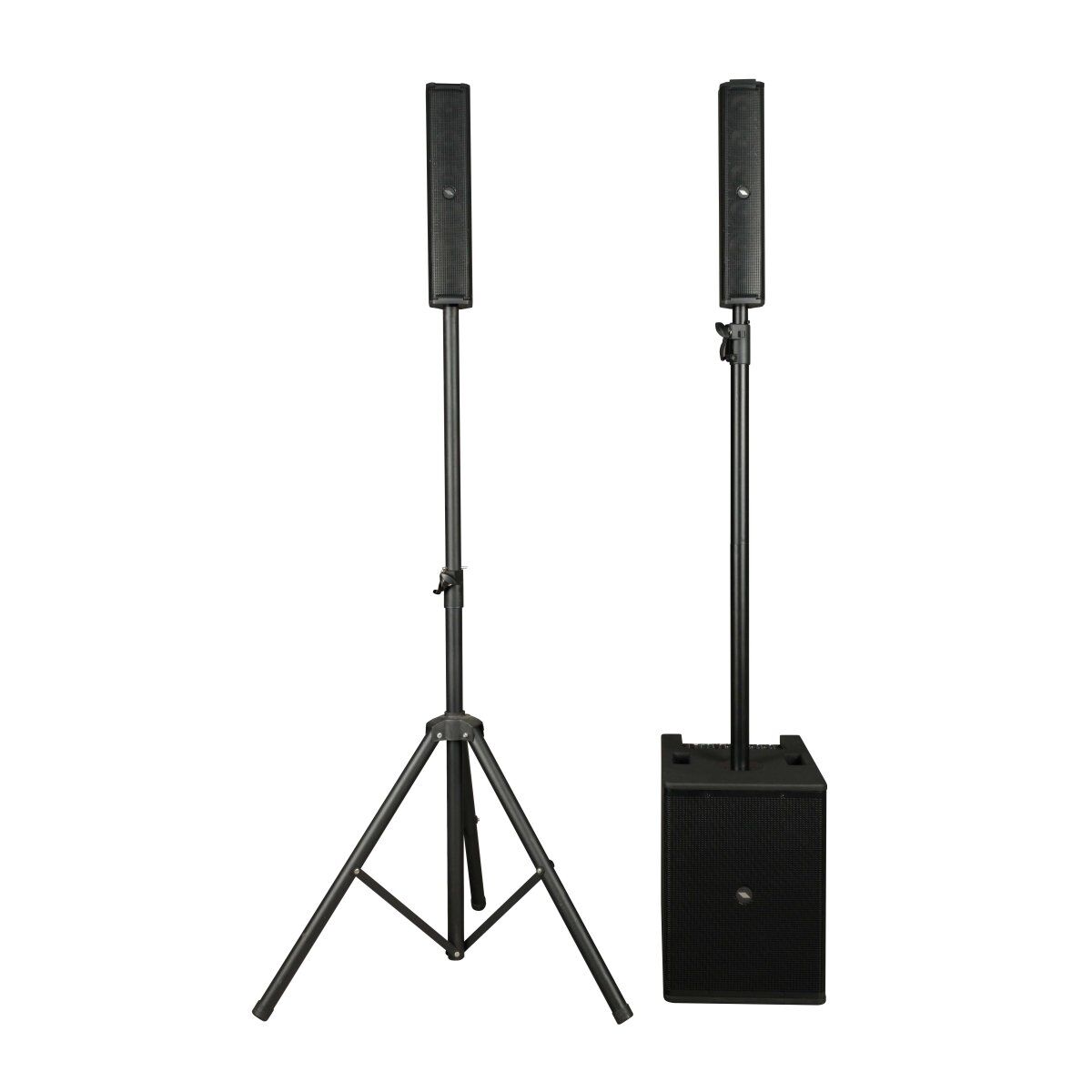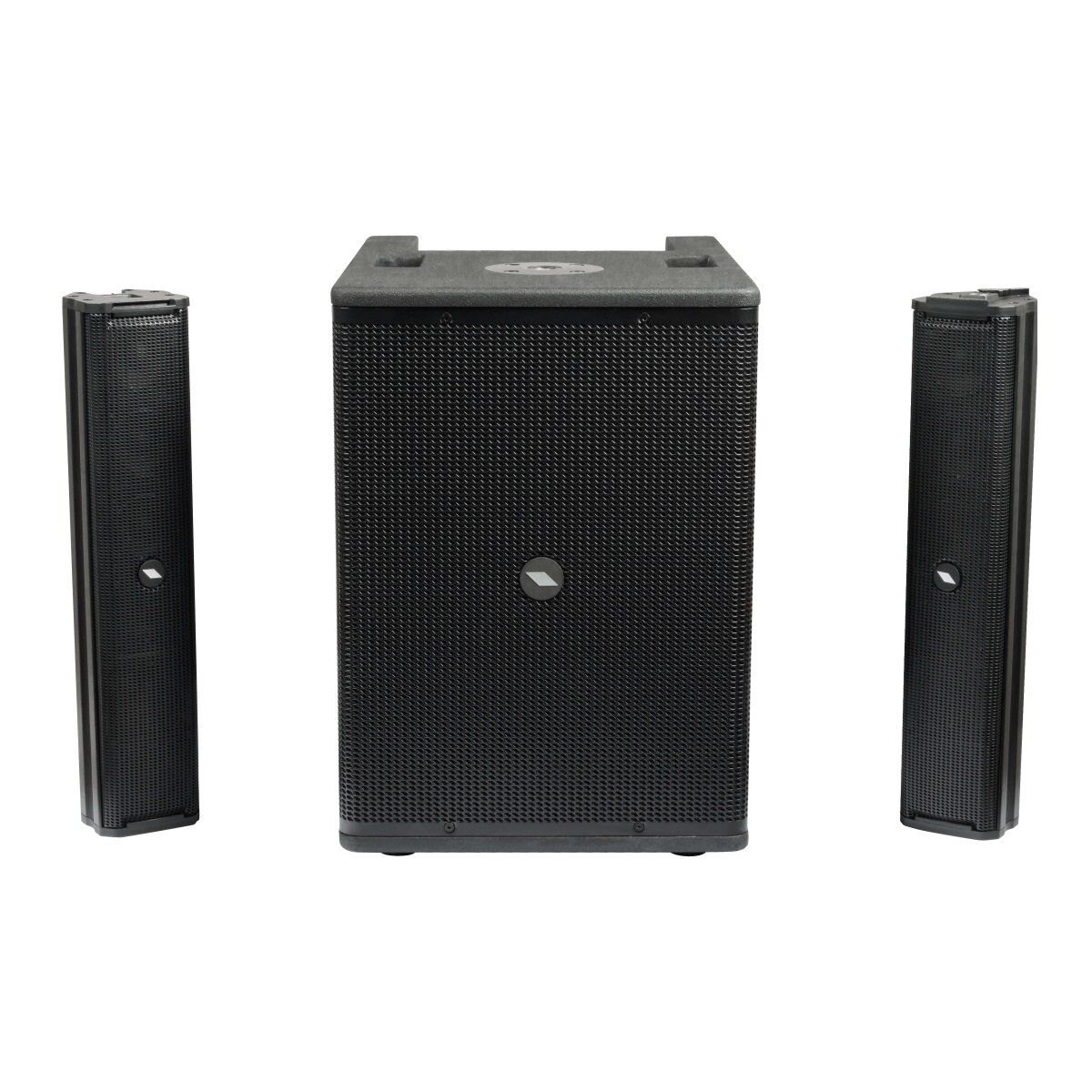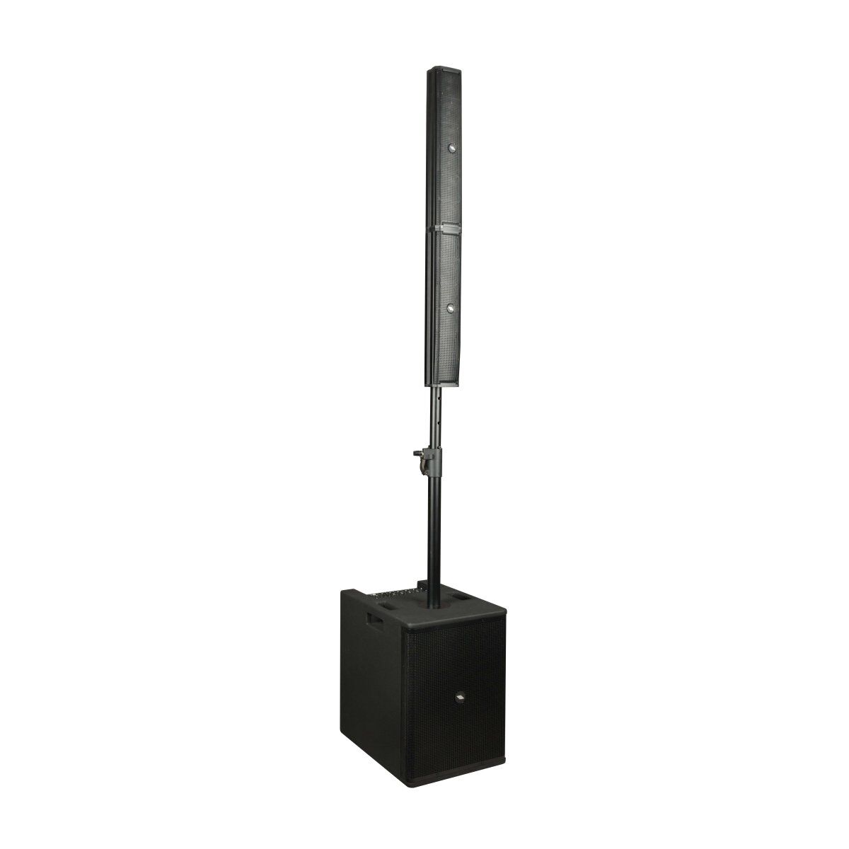 - Kompaktes 2.1-PA-System mit zwei Top-Einheiten und einem Subwoofer für professionellen Klang