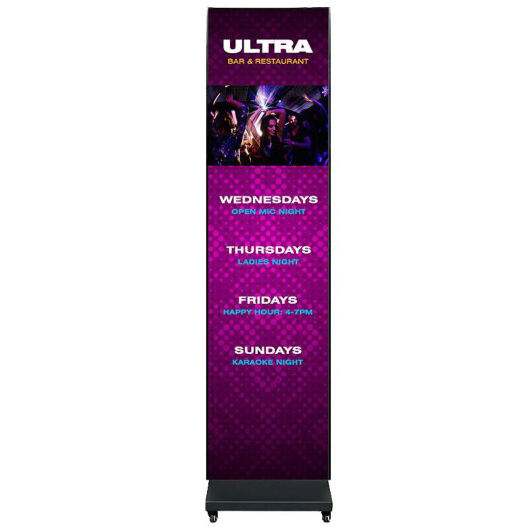 Das ADJ WMS2 Media Sys ist ein komplettes Indoor-LED-Videodisplay für professionelle Digital‑Signage‑Anwendungen im Handel, auf Messen und bei Live-Events. Das System kombiniert zwei WMS2 LED-Panels mit einem stabilen Displayständer und integriertem Novastar-Steuerungspaket – ideal für aufmerksamkeitsstarke Markenbotschaften, Infotafeln und animierte Inhalte auf begrenzter Fläche.