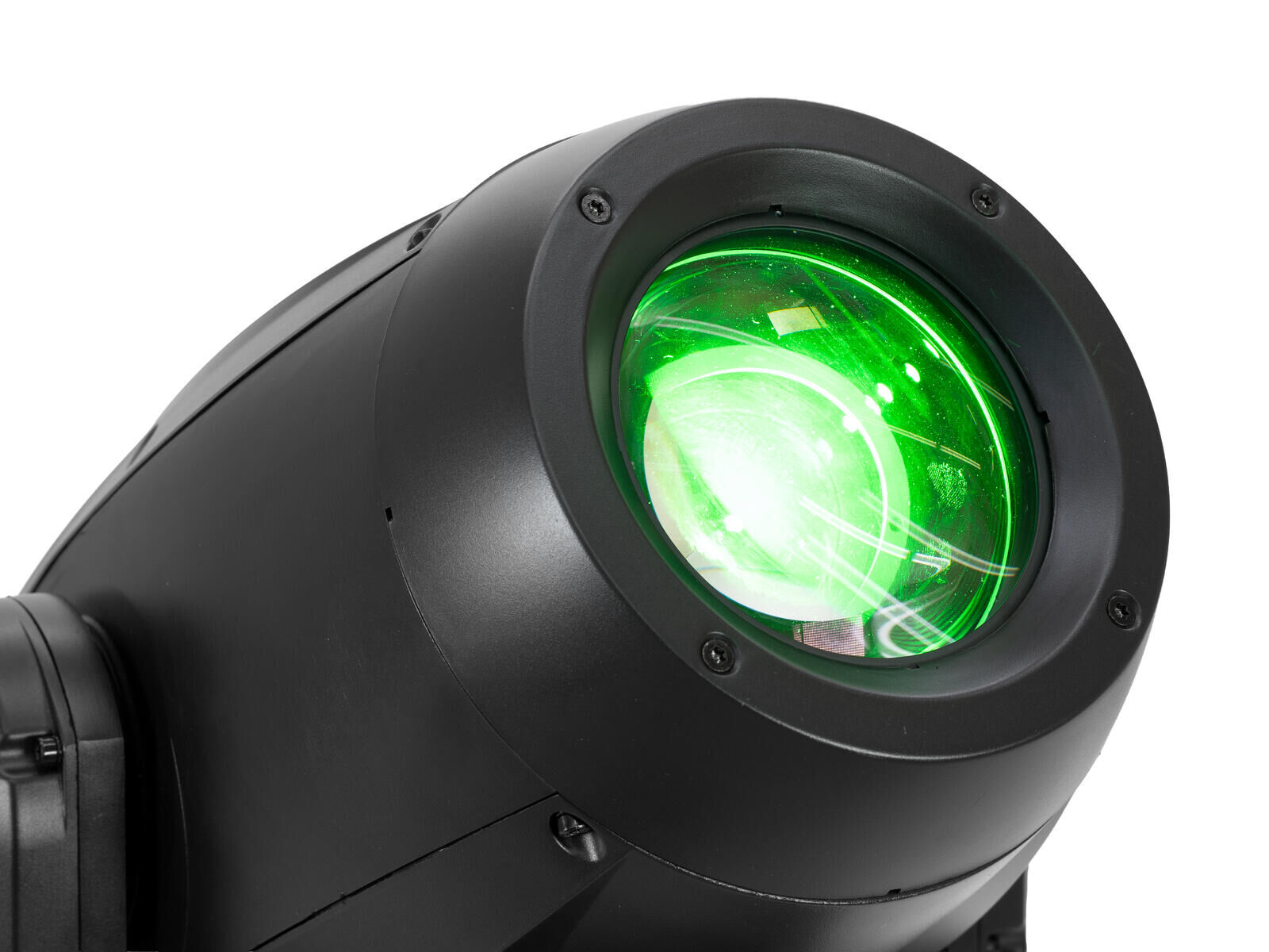 Für kreative Looks stehen zwei Goboräder bereit: ein Rad mit acht rotierenden Gobos sowie ein Rad mit acht statischen Gobos, jeweils mit „offen“. Dank Slot-In-Gobo-System lassen sich Motive schnell wechseln, Außendurchmesser und Imagedurchmesser sind eindeutig definiert für passgenaue Einleger. Ein rotierendes 4-fach-Prisma erweitert die Möglichkeiten für dynamische Mid-Air-Effekte, während der integrierte Frostfilter den Beam weichzeichnet und Wash-ähnliche Flächen erzeugt – besonders hilfreich für atmosphärische Stimmungen oder Hintergrundleuchten.