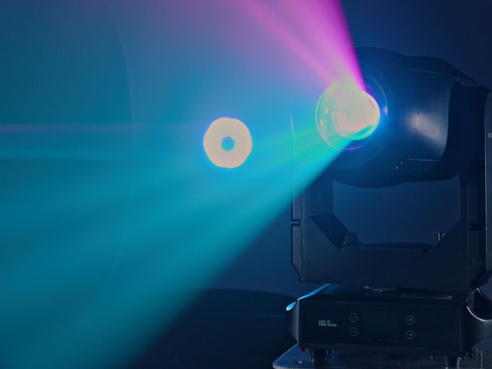 Die Farbumsetzung erfolgt über ein Farbrad mit zehn dichroitischen Farbgläsern plus „offen“. Halbfarben sind anwählbar, und ein beidseitiger Rainbow-Effekt mit variabler Geschwindigkeit ermöglicht fließende Farbverläufe. Der motorische Fokus sorgt für scharfe Abbildungen auch bei größerer Distanz. Zusammen mit dem großen Zoombereich bietet der TMH-S250 eine starke Basis für präzise Gobo-Projektionen, akzentuierte Beams und breite Washes – flexibel einsetzbar in Clubs, Tanzschulen, bei Hochzeiten, Galas oder auf Tour.