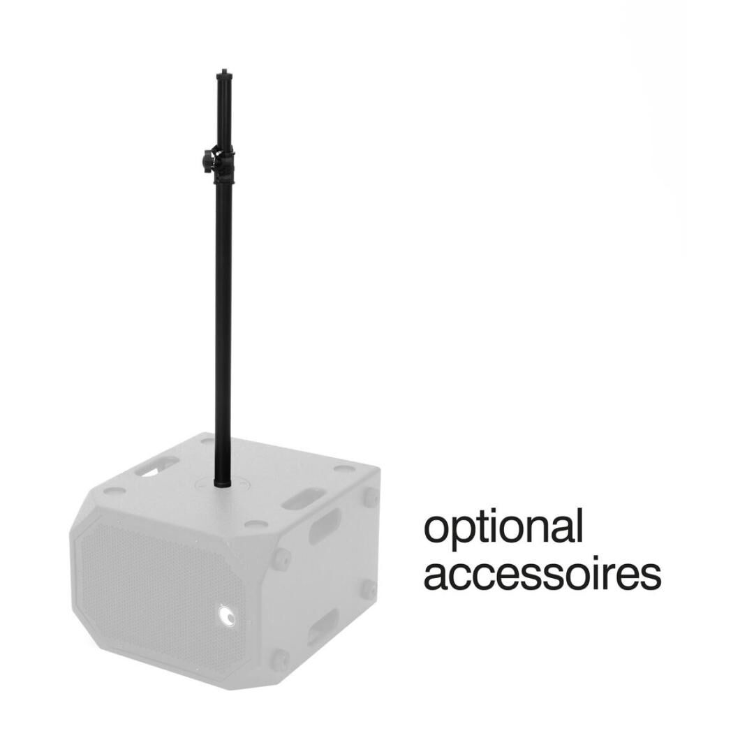 Mit einer variablen Höhe von 67 bis 117 cm passt sich die Distanzstange flexibel an Raum, Bühne und Publikum an. Ob als dezente Nahfeldlösung in kleinen Clubs oder für klare Höhenabstrahlung bei Veranstaltungen – die stufenlose Anpassung erleichtert eine saubere Ausrichtung der Tops und unterstützt eine gleichmäßige Beschallung.