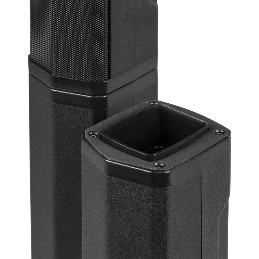 Herzstück des Systems ist ein effizienter Class-D Verstärker (320 W max., 160 W RMS), der die Säule mit 4 x 2,75" Mittelhochtönern und den 8"-Woofer kontrolliert antreibt. Das Ergebnis ist ein weiter Frequenzbereich von 45 Hz bis 20.000 Hz und ein maximaler Schalldruck von 116 dB – genug Reserven für kleinere bis mittlere Indoor-Events und mobile Anwendungen. Ein integrierter DSP unterstützt die Signalbearbeitung und trägt zu einem sauberen, durchsetzungsfähigen Klangbild bei.