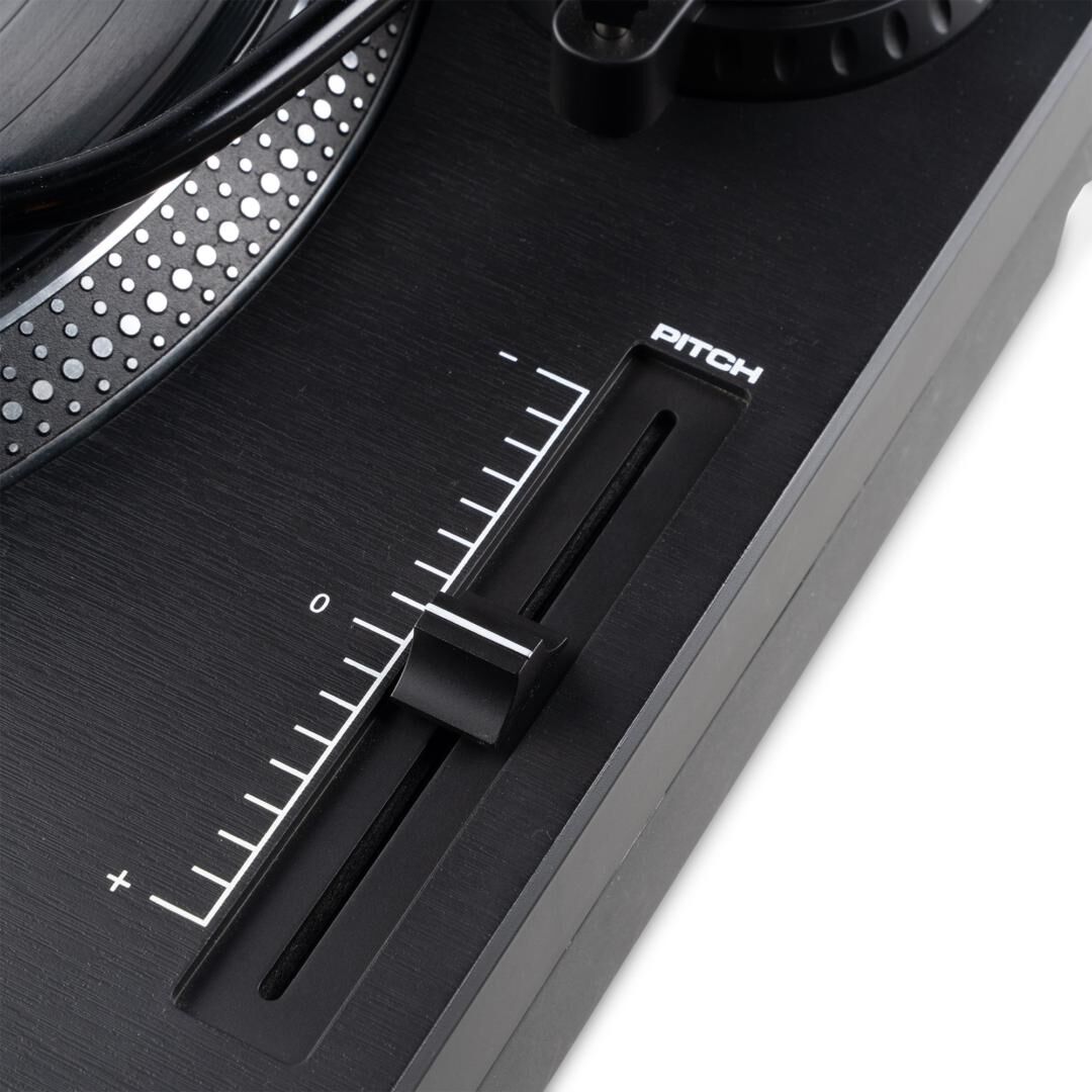 Für sauberen Klang setzt der DT3000 auf einen leichten Aluminium-Plattenteller sowie einen S-förmigen Tonarm mit Anti-Skating. Das einstellbare Gegengewicht ermöglicht die korrekte Auflagekraft, während der Pitch-Regler feine Geschwindigkeitsanpassungen erlaubt. Diese Kombination reduziert Verzerrungen und verbessert Spurtreue und Gleichlauf – hörbar bei leisen Passagen und deutlichen Transienten.