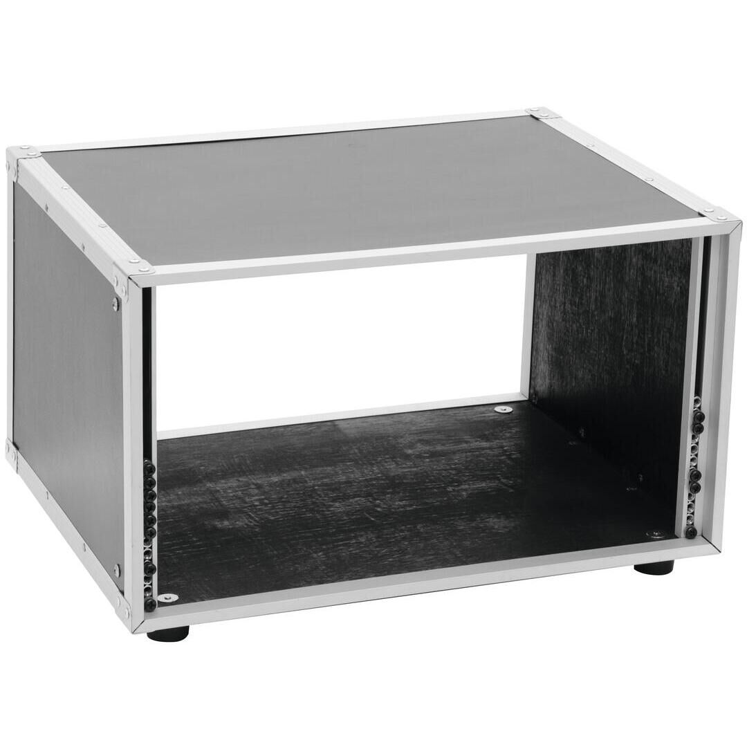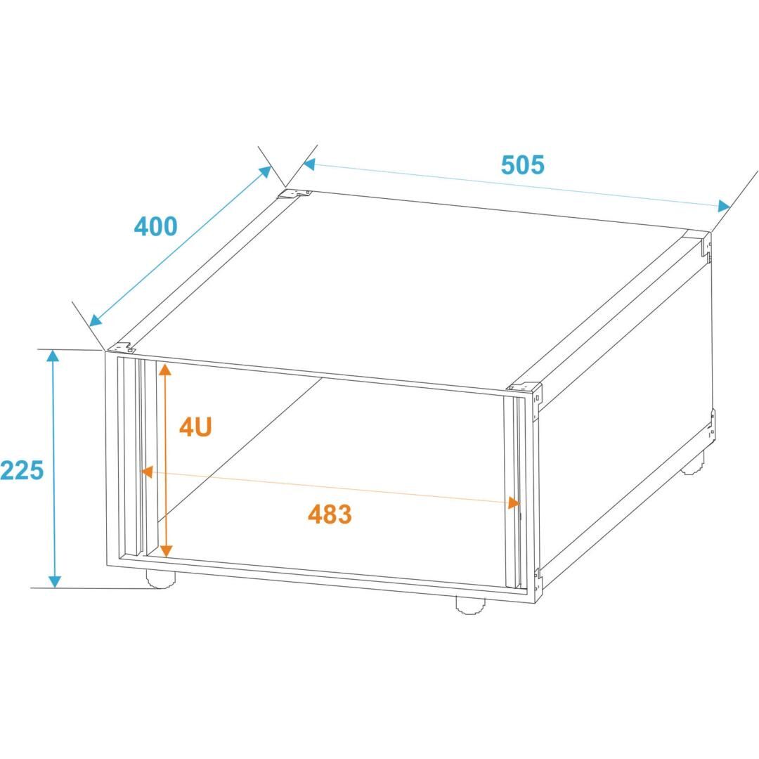 Der ROADINGER Effektrack Studio 4HE ist ein hochwertiger Studio-Effektrack, der speziell für 483-mm-Geräte (19") entwickelt wurde. Mit seiner robusten Verarbeitung und durchdachten Konstruktion bietet er eine zuverlässige Aufnahme- und Transportlösung für Ihr Audio-Equipment. Der Effektrack verfügt über einseitig eingebaute Rackschienen, die eine einfache Installation und Anpassung Ihrer Geräte ermöglichen. Das Gehäuse besteht aus schichtholz mehrlagig verleimt mit einer Stärke von 7 mm und ist schwarz laminiert, was für Langlebigkeit und ein professionelles Erscheinungsbild sorgt. Der Aluminiumprofilrahmen mit einer Stärke von 22 mm und abgerundeten Ecken bietet zusätzlichen Schutz und Stabilität. Die integrierten Gummifüße sorgen für einen sicheren Stand und schützen gleichzeitig den Untergrund vor Kratzern.