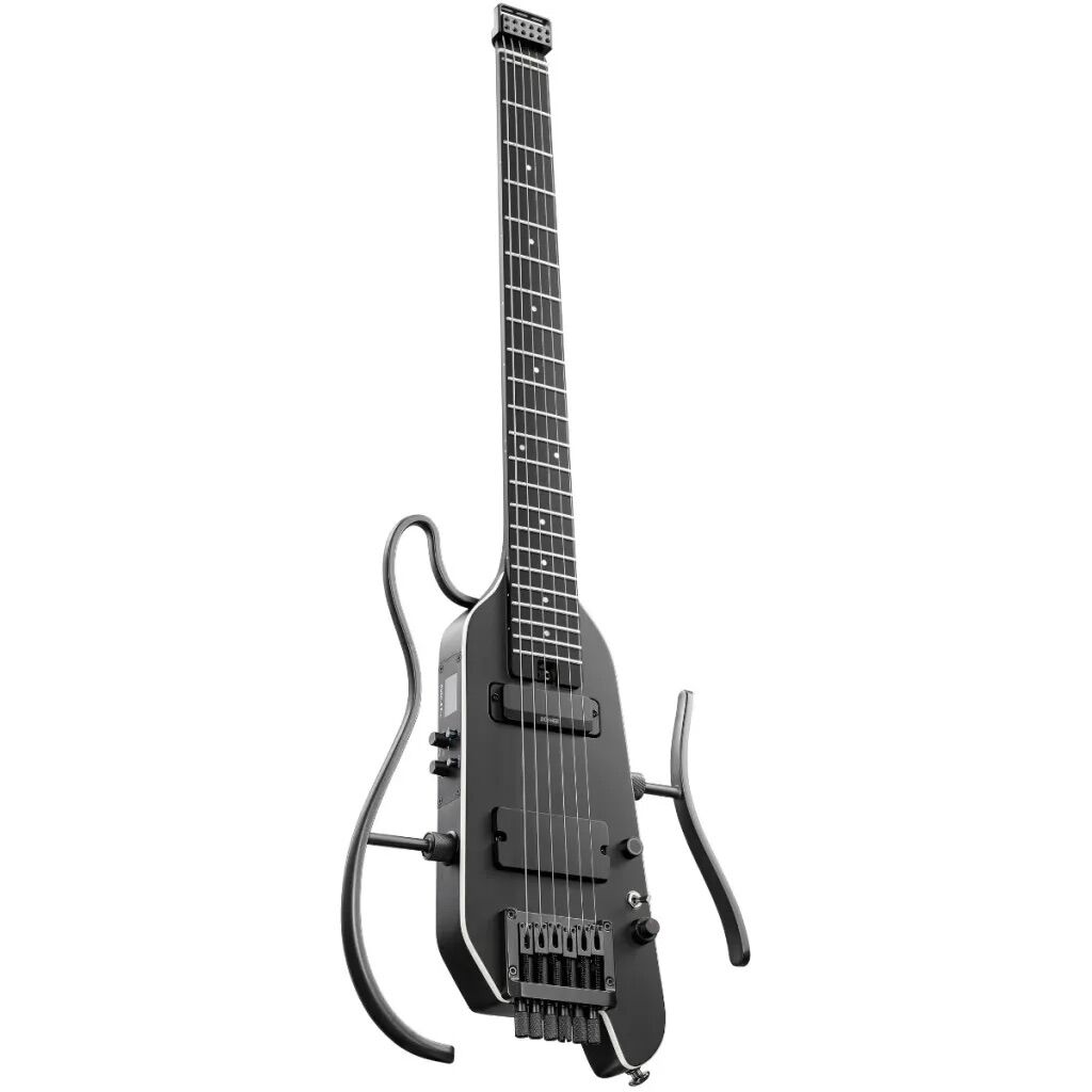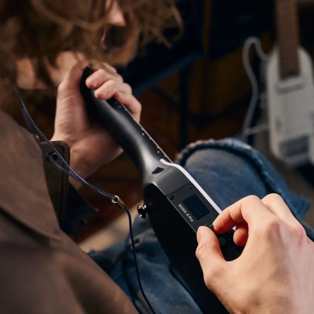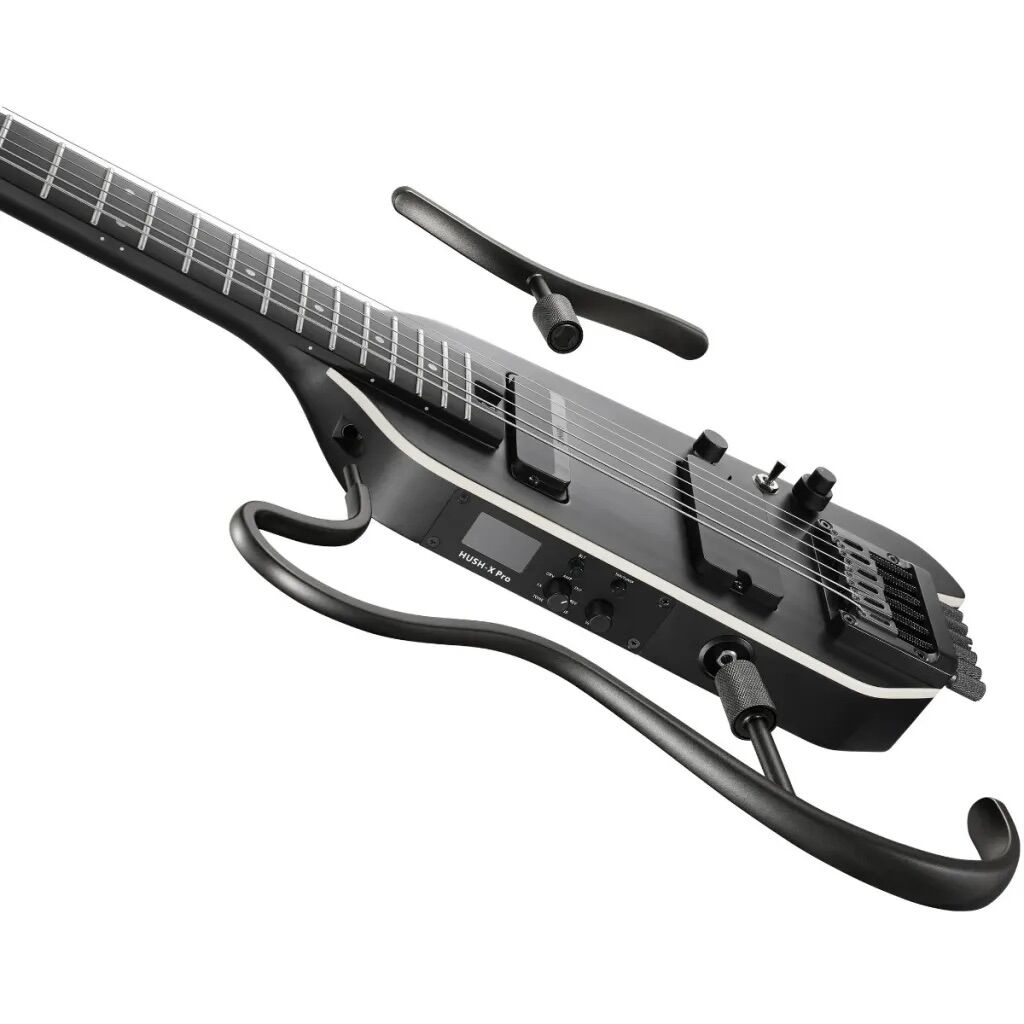 Die HUSH-X PRO kombiniert modernes Design mit fortschrittlicher Technologie. Die offene Holzstruktur auf der Rückseite sorgt für ein natürliches Spielgefühl. Der leistungsstarke DXP-Prozessor bietet 19 Verstärkermodelle, 7 Gitarrensimulationen und über 30 Effekte, die über ein intuitives OLED-Display und ein Multifunktionsrad einfach zu bedienen sind. Dank des USB-C-Anschlusses kannst du die Gitarre aufladen und gleichzeitig digitalen Ton auf deinen Computer oder dein Tablet aufnehmen.