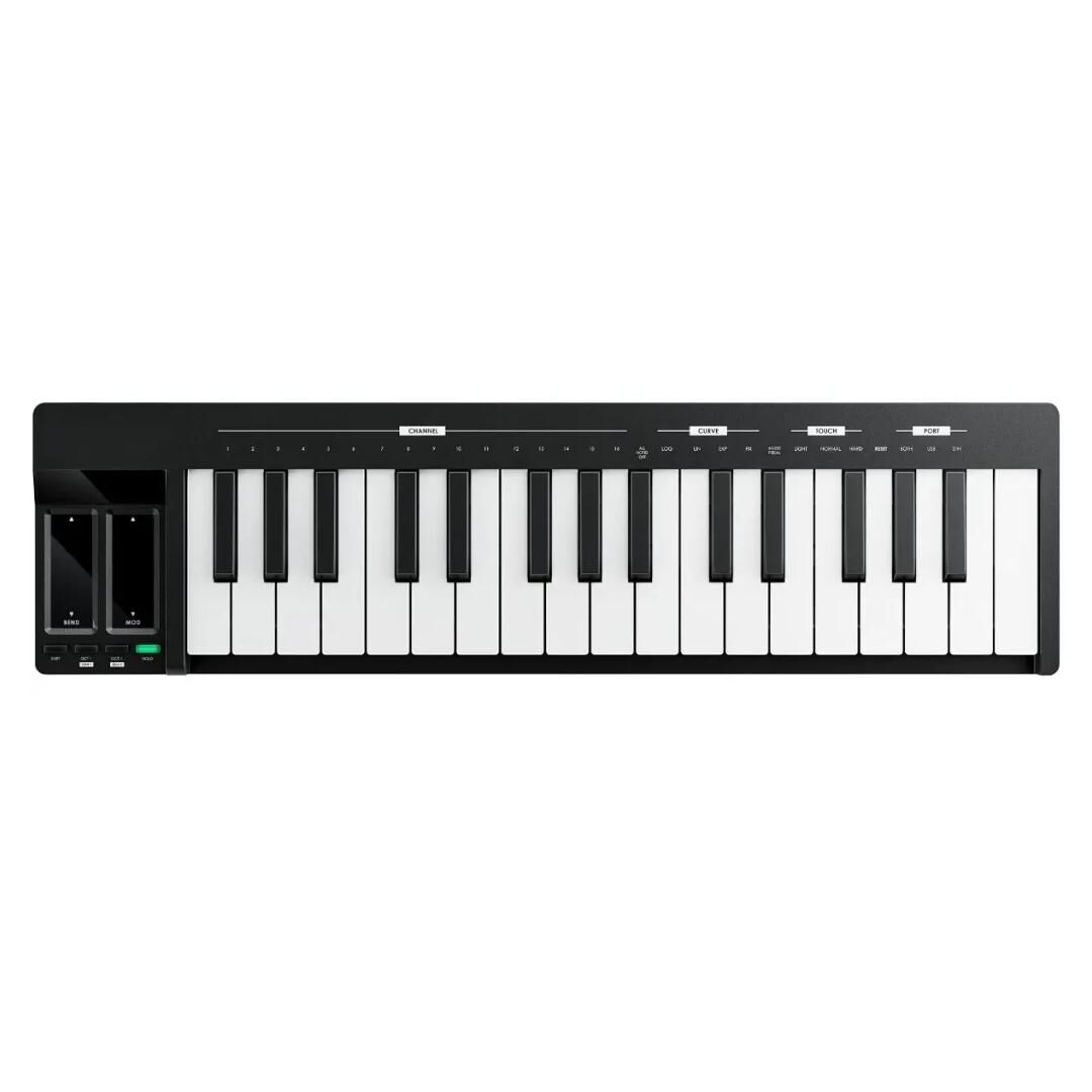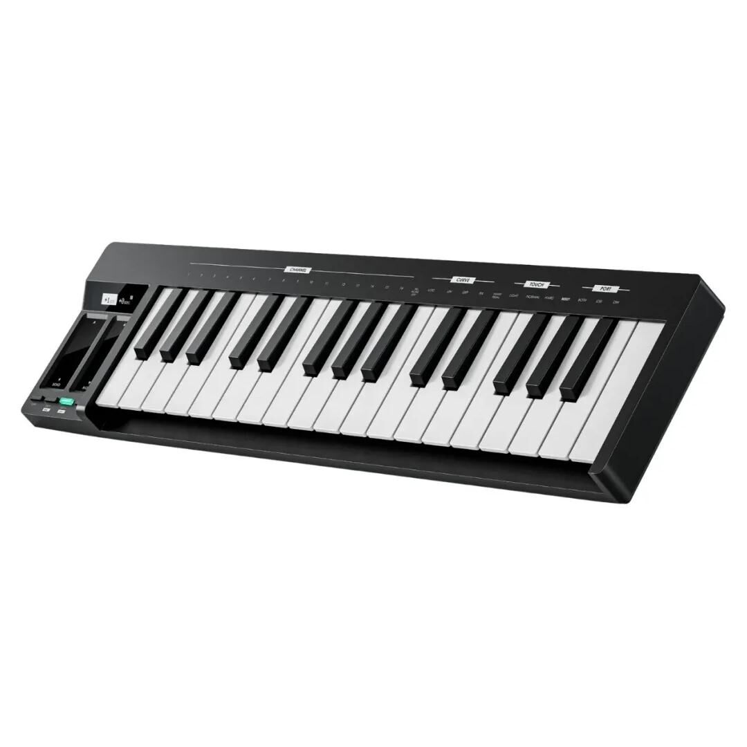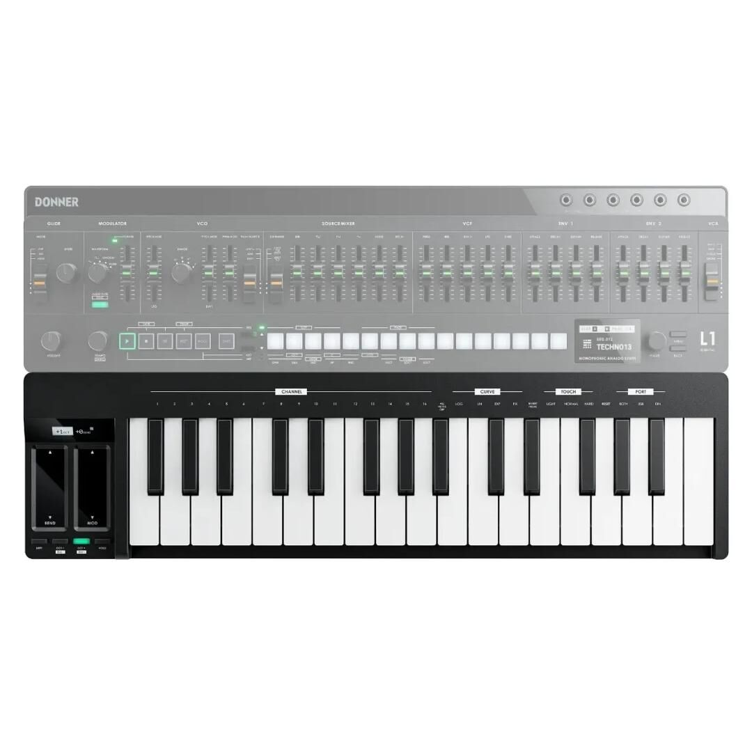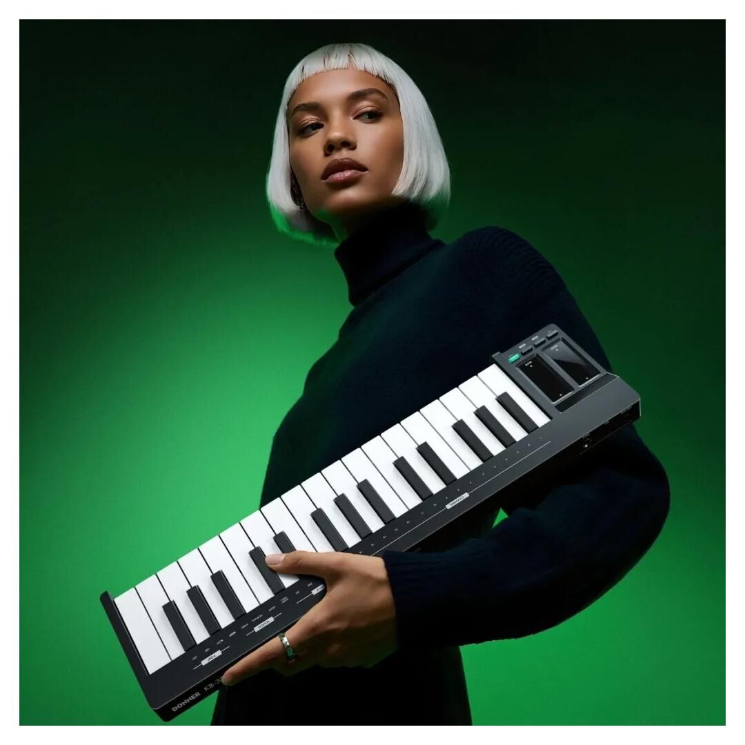 Das Donner KB-32 USB MIDI Keyboard (Modell KB-32M) ist ein kompaktes 32‑Tasten MIDI‑Keyboard für Studio, Bühne und mobiles Produzieren. Als vielseitiger USB‑MIDI Controller mit OLED‑Display richtet es sich an Einsteiger und fortgeschrittene Musiker, die eine zuverlässige und platzsparende Lösung für die DAW‑Steuerung und Performance suchen. Mit seinem leichten Kunststoffgehäuse in Schwarz und der klar strukturierten Bedienlogik passt das KB‑32M ideal auf den Schreibtisch, ins Homestudio oder in den Rucksack für Sessions unterwegs.