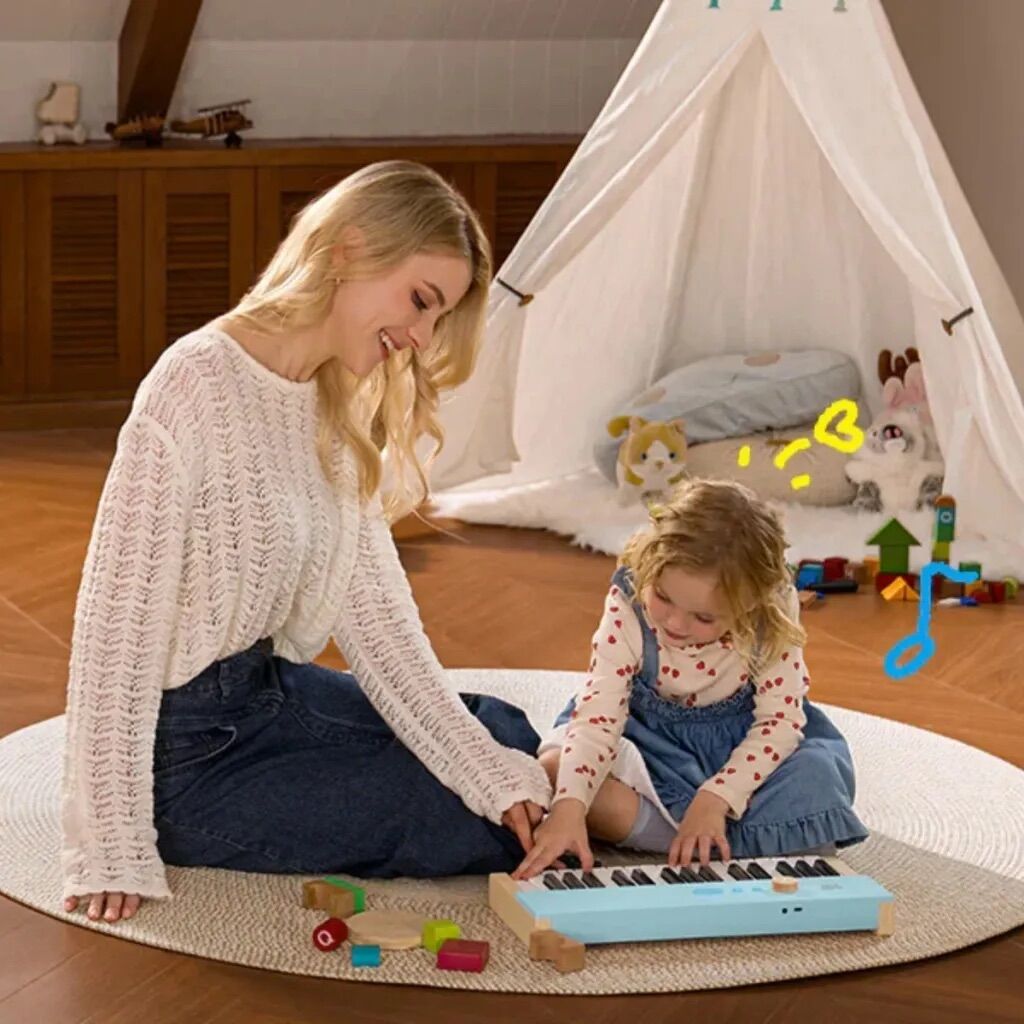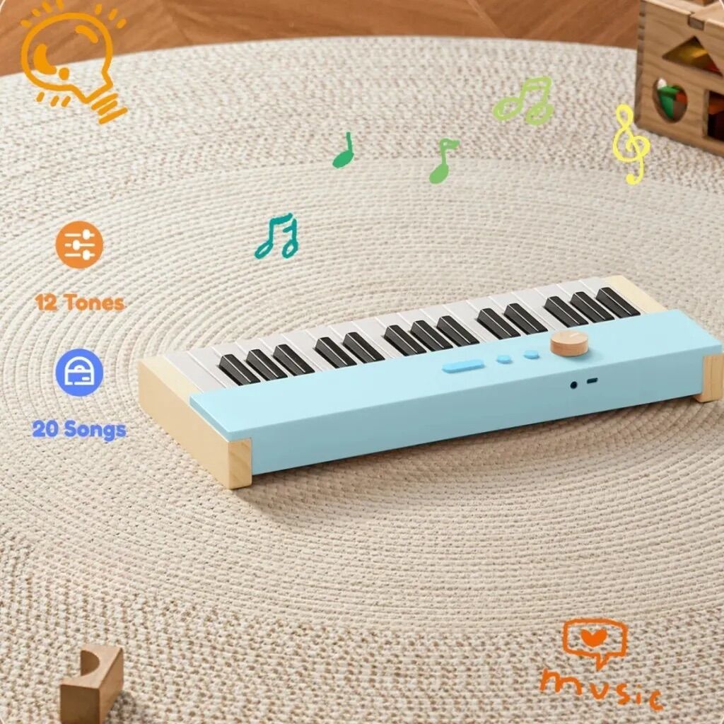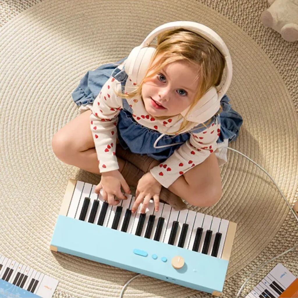 Das Piano ist aus massivem Holz gefertigt und erfüllt strenge CPC-Sicherheitsstandards. Alle Kanten sind glatt und abgerundet, sodass Kinder sicher spielen können. Die stabile Bauweise und die einfachen Bedienelemente machen das Instrument langlebig und besonders leicht zu bedienen – auch für jüngere Kinder.