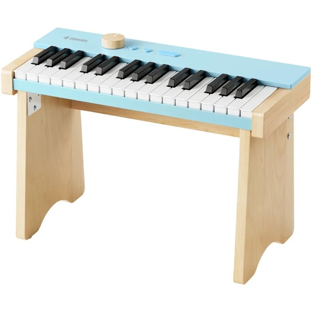 Das Donner KIDO V-10 ist ein liebevoll gestaltetes und durchdachtes E-Piano, das speziell für Kinder entwickelt wurde, die ihre ersten Schritte in die Welt der Musik machen. Die hellblaue Oberfläche in Kombination mit natürlichem Holz verleiht dem Instrument ein freundliches, modernes Erscheinungsbild, das perfekt ins Kinderzimmer passt und zum Spielen sowie kreativen Entdecken einlädt.